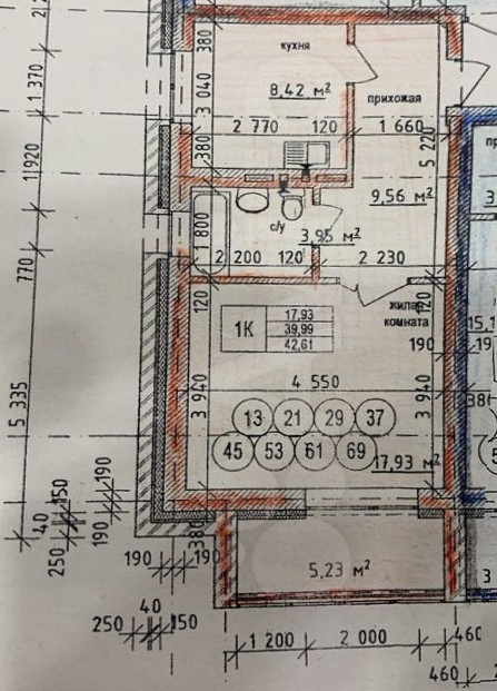 Общая площадь 42.6 м2