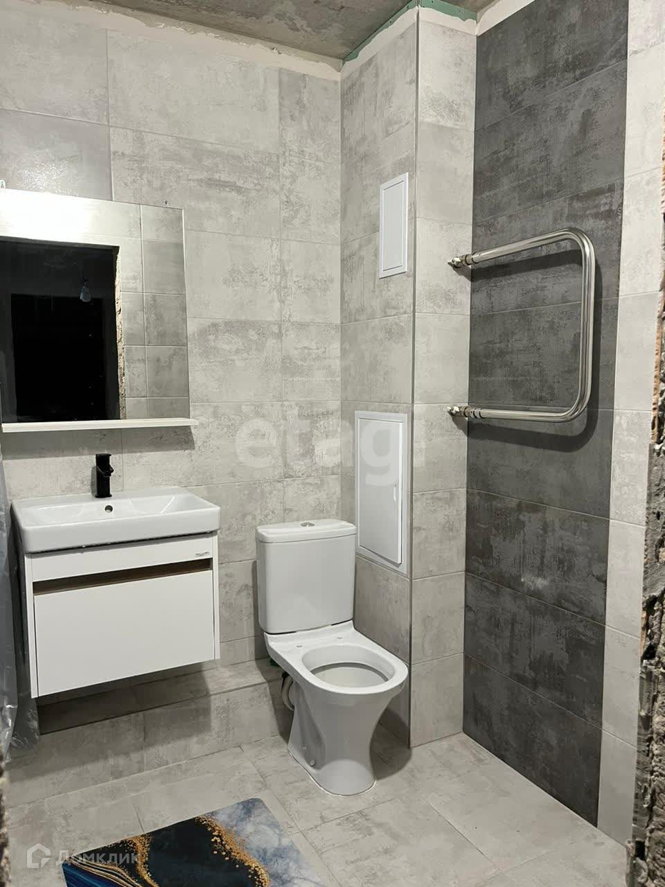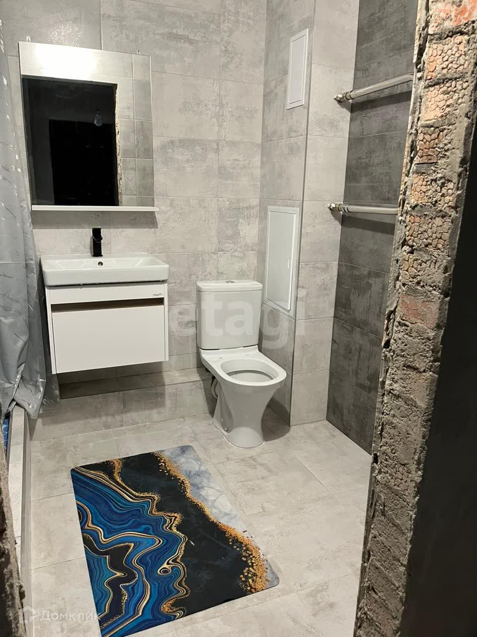 - В санузле произведена гидроизоляция, выложена плитка , установлена вся сантехника.