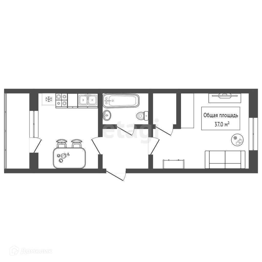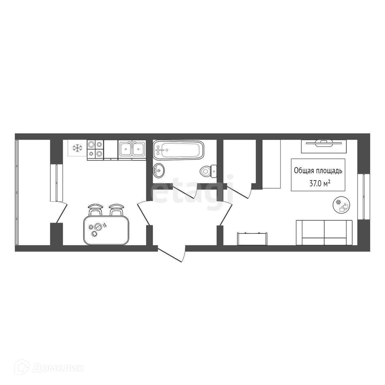 Общая площадь 37 м2