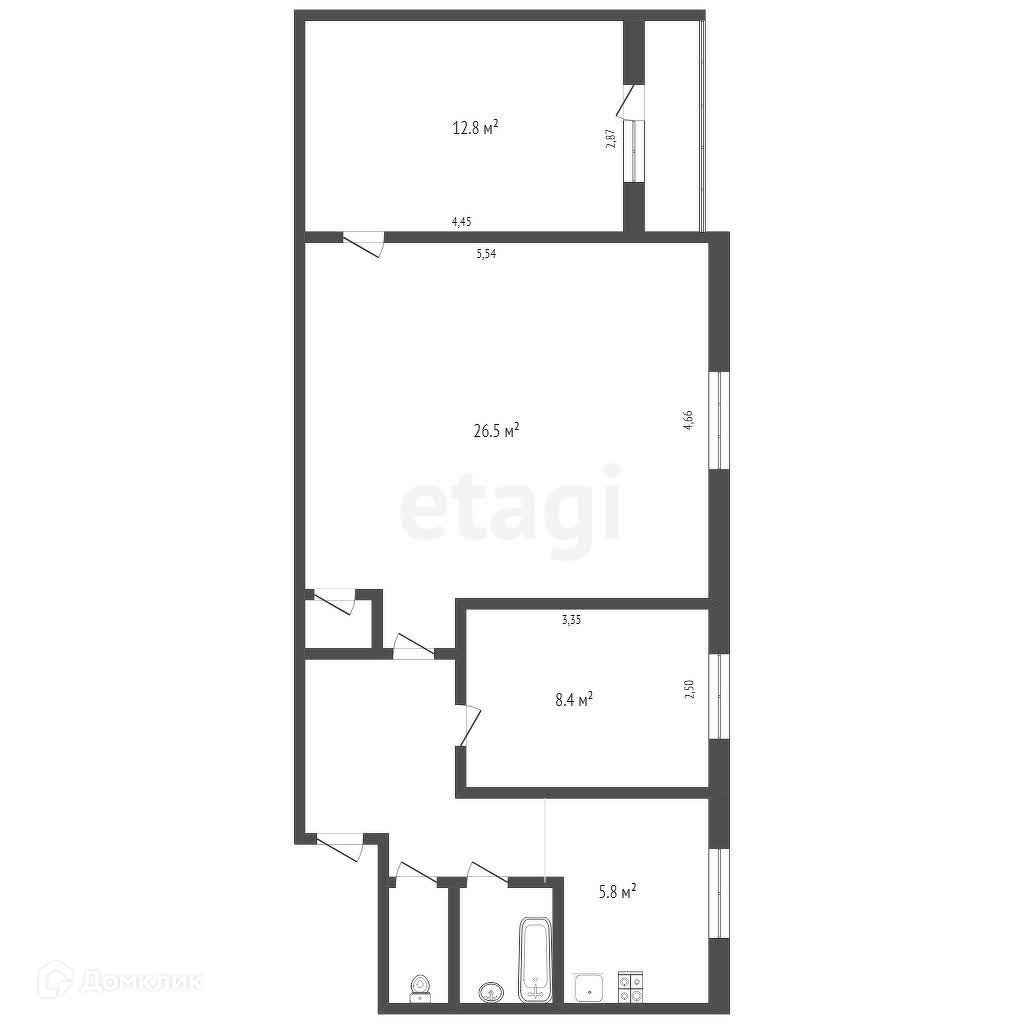 Прекрасная планировка квартиры, раздельный санузел, большая гостиная 26,5 кв.м.
