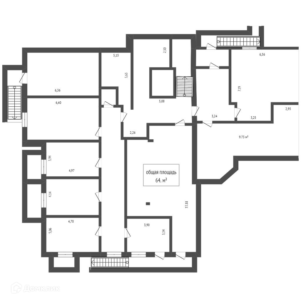 Общая площадь 64.4 м2