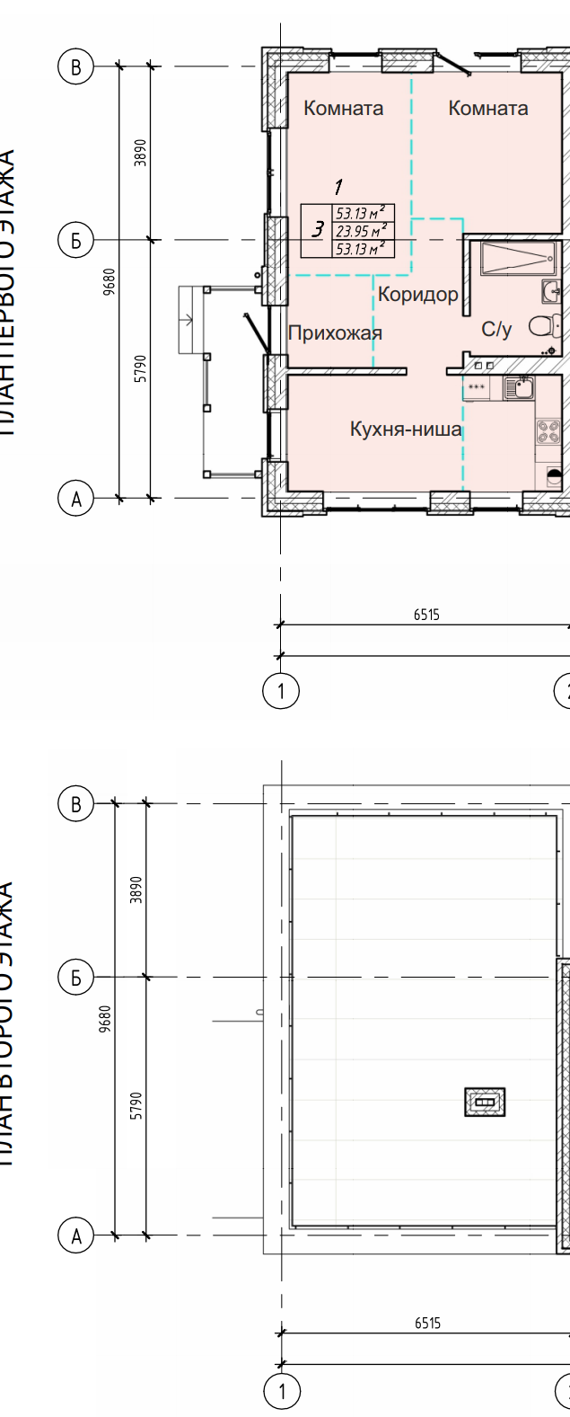 Общая площадь 53.3 м2