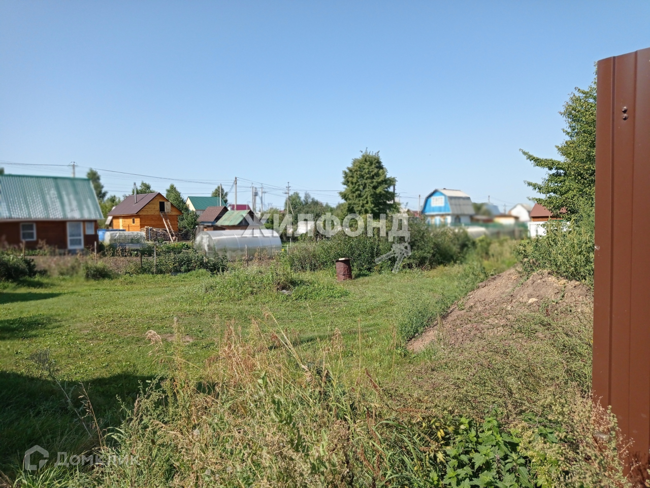 Участок ровный (5.11сот) в собственности. Огорожен с 3-х сторон.