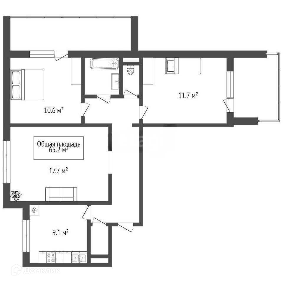 Общая площадь 65.2 м2