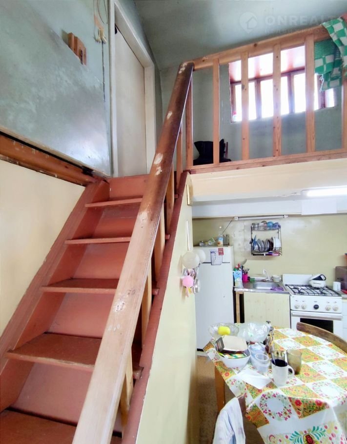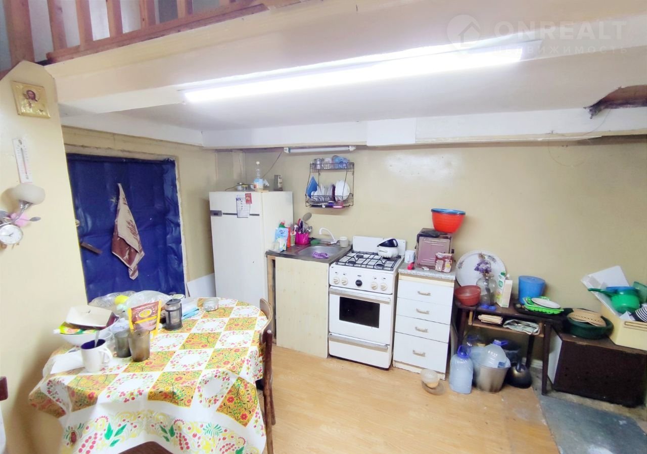 1-ая комната кухня гостиная с лестницей на 2-ой этаж и выходом в баню.