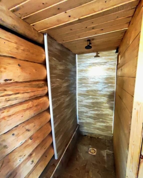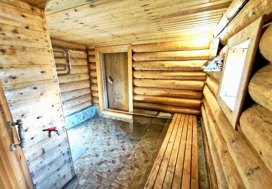 - На участке стоит бревенчатая ,утепленная баня на сваях площадью - 3 на 6, разделенная на три отсека: предбанник, помывочная, парилка.