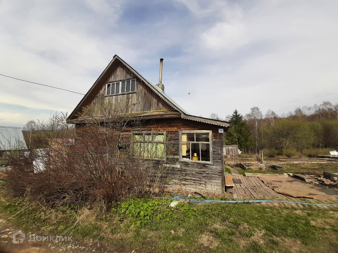 - Дом утеплен, снаружи обшит деревом.
