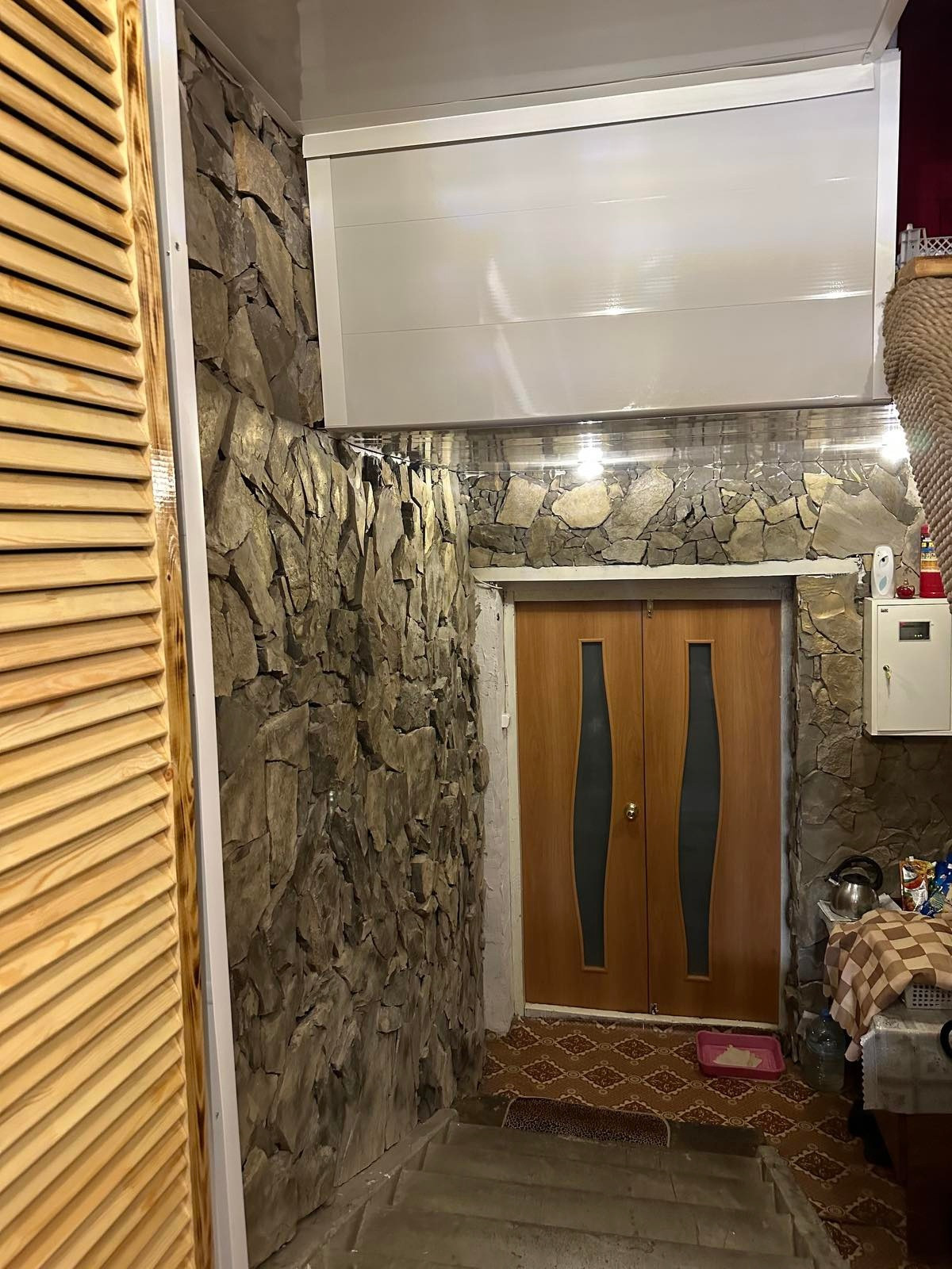 В доме на 1 этаже расположены 3 комнаты. Еще имеется большая мансарда и подвал. Перекрытия выполнены из шлакоблоков. Кровля – металлочерепица. В доме заменена проводка. Окна ПВХ. Санузел совмещен и находится  в доме.