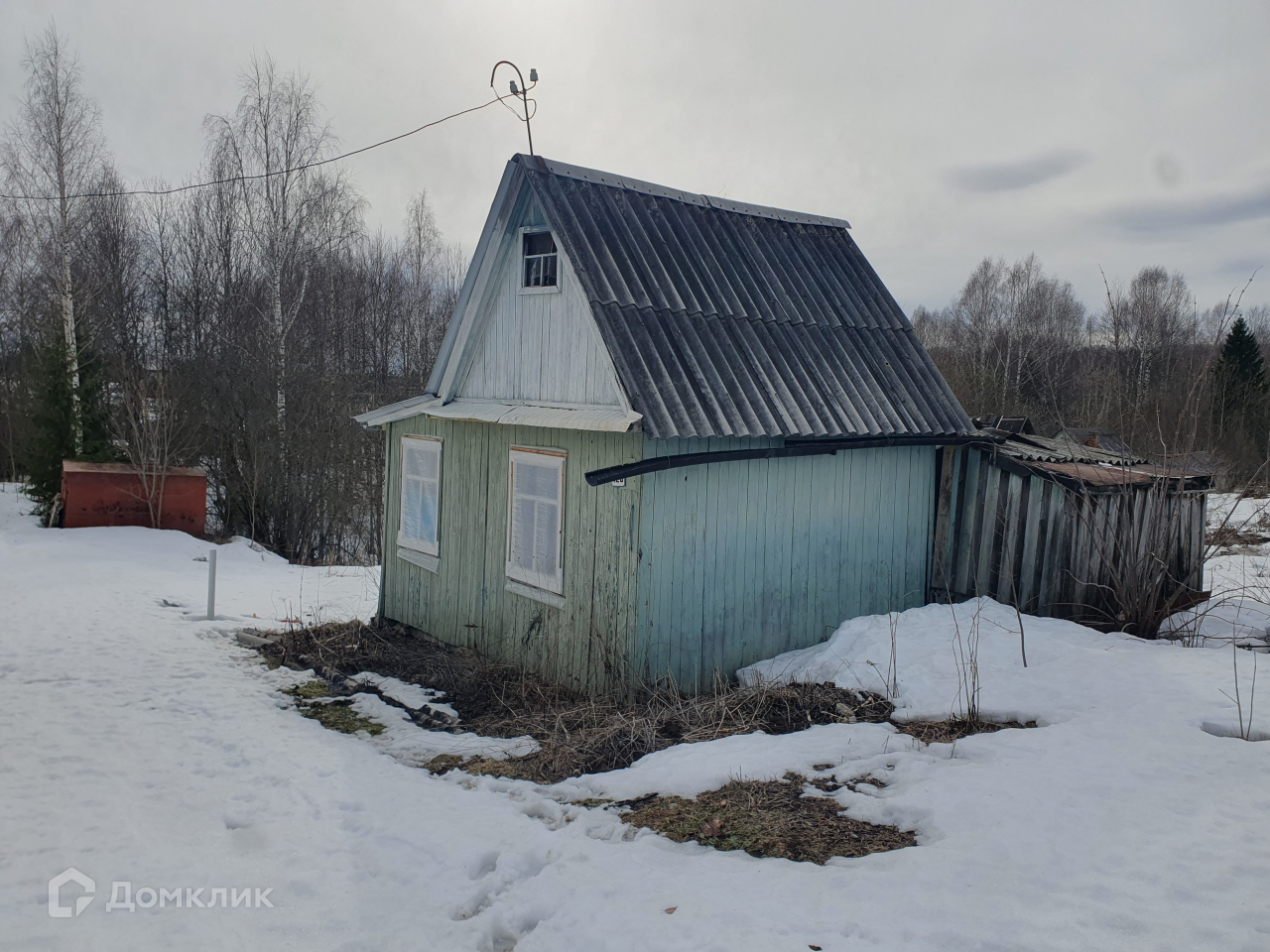 - Есть большой пристрой для хранения дров и рабочего инвентаря, после зимы на нем обвалилась крыша (можно сделать открытую веранду)
