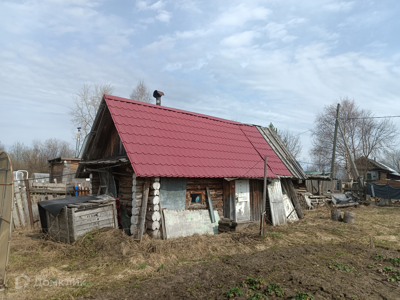 - Одноэтажный бревенчатый дом