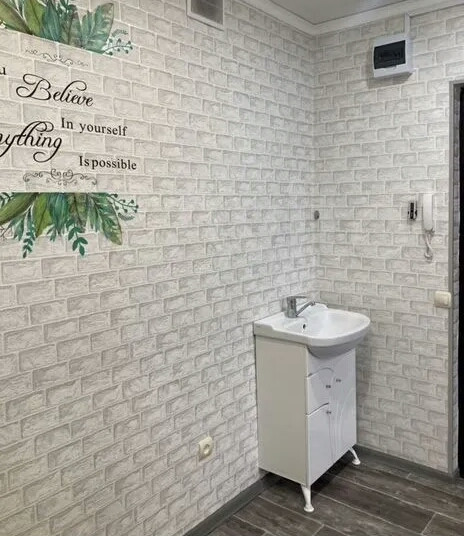 Комнаты разделены на две части (перепланировка узаконенна) Капитальный ремонт, натяжной потолок, окна ПВХ, вода заведена в комнату. Тумба с умывальником остается. Счетчики на свет двухтарифные_новые в комнате. Соседи (одна пожилая женщина). Этаж закрывается на домофон. Один взрослый собственник