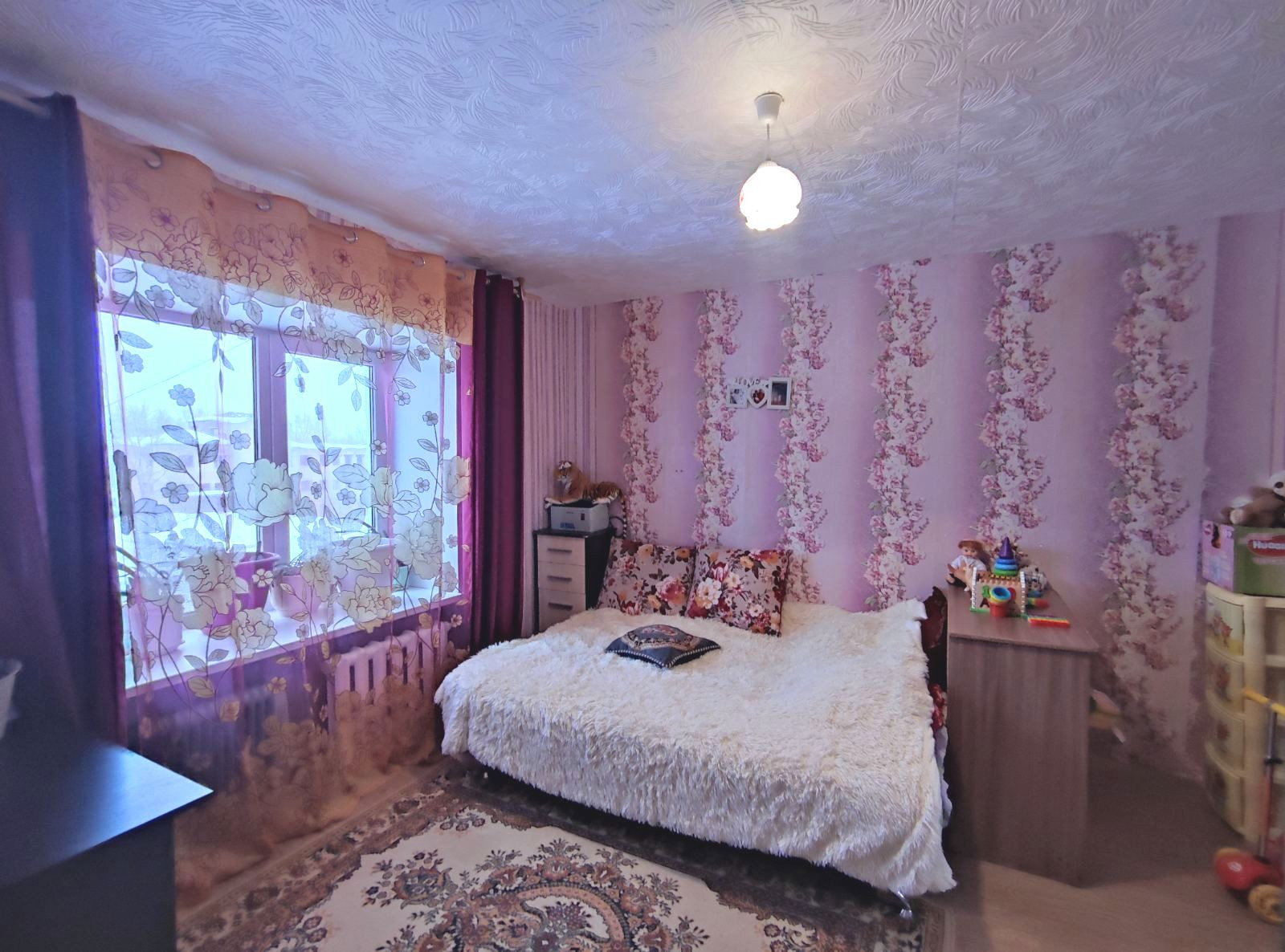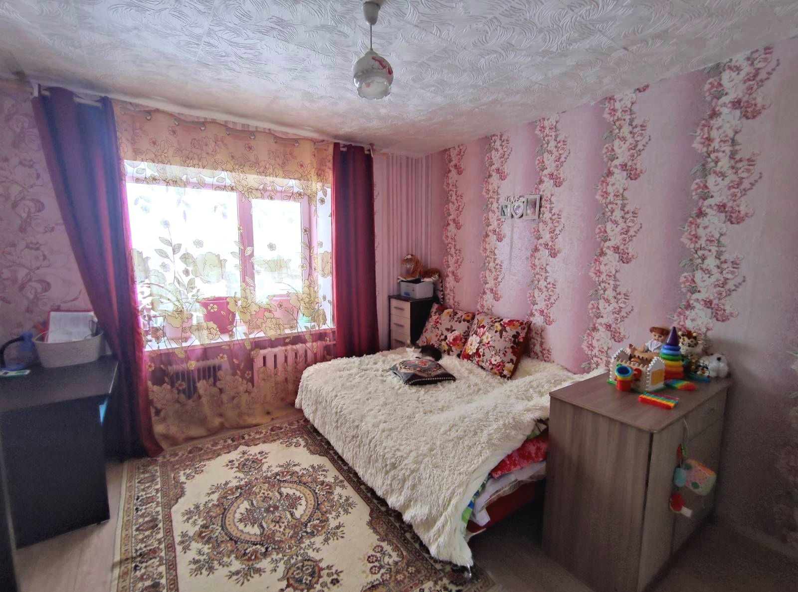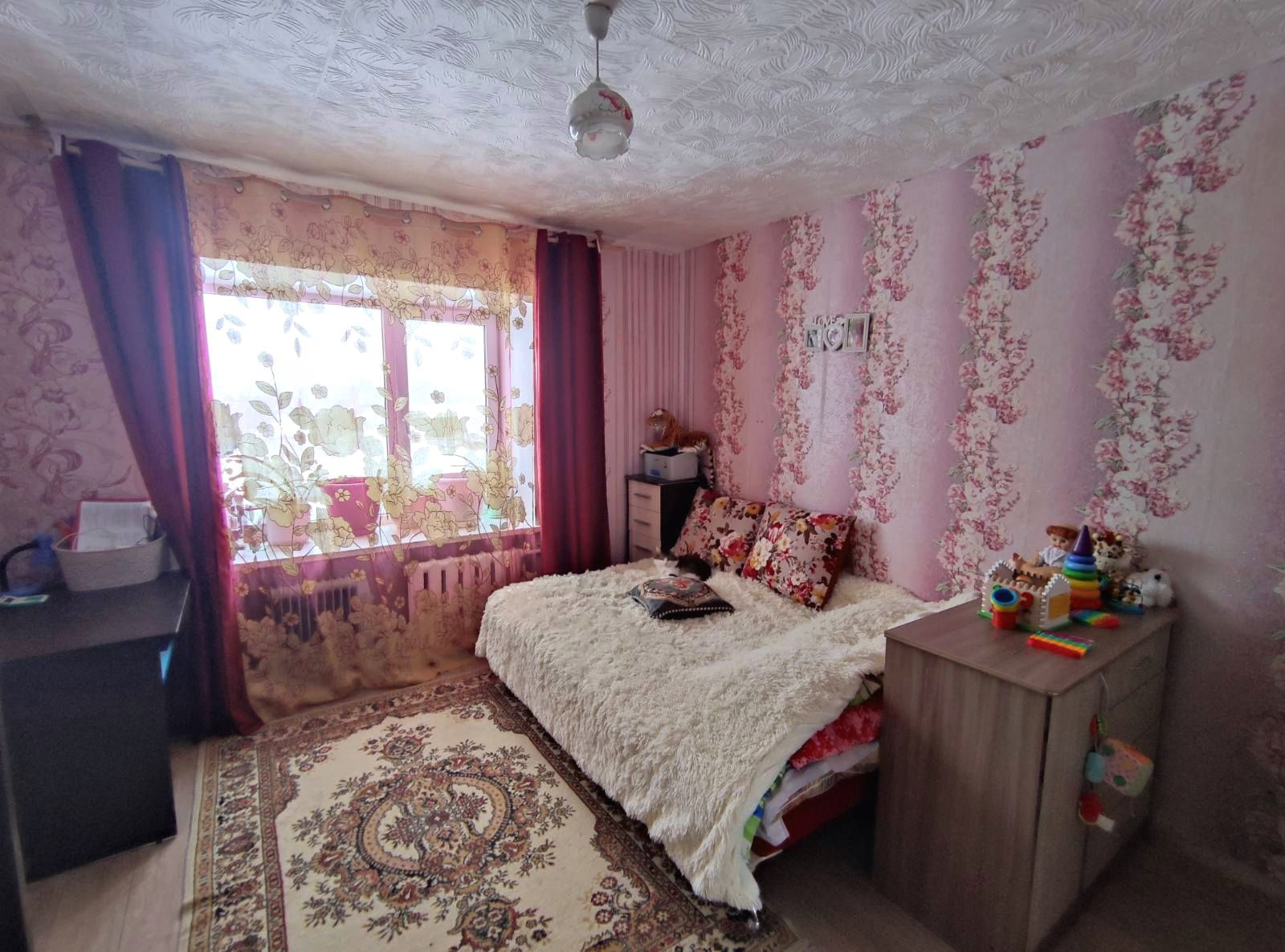 2 комната: спальня: окна ПВХ, на полу линолеум.