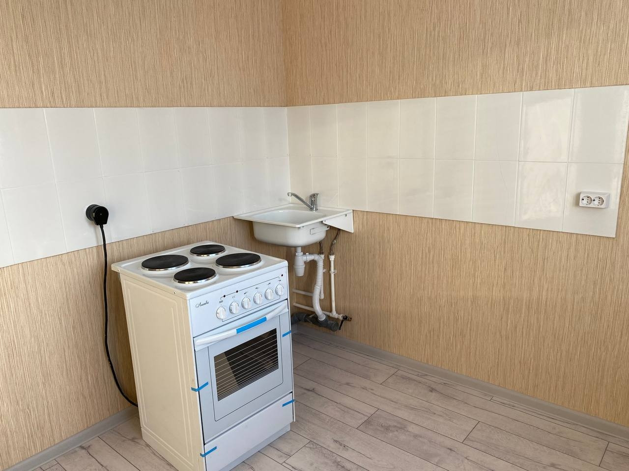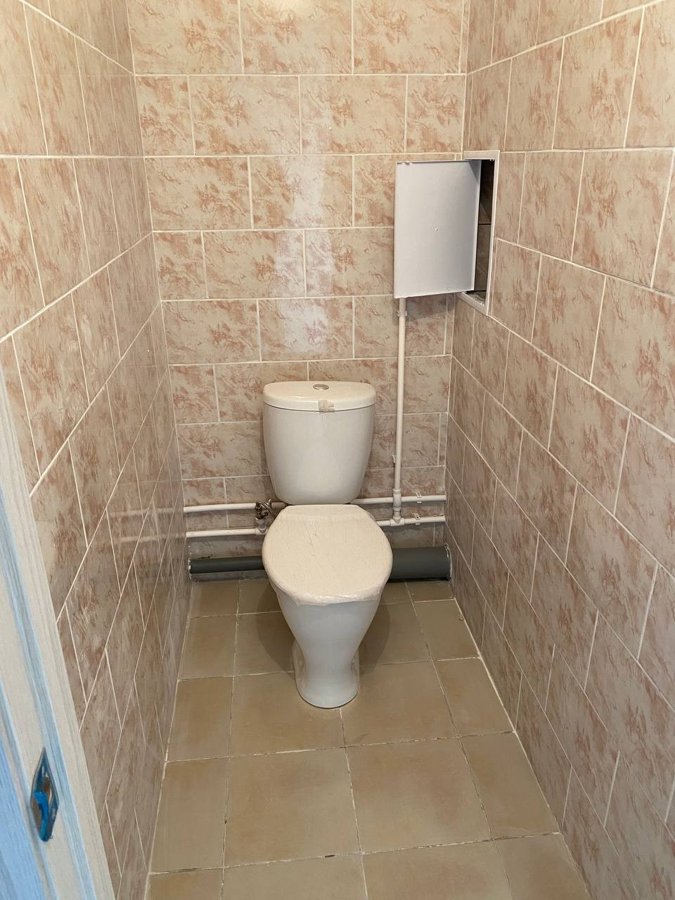 В ванной и туалете стены выложены кафельной плиткой, так же на кухне выложен фартук.