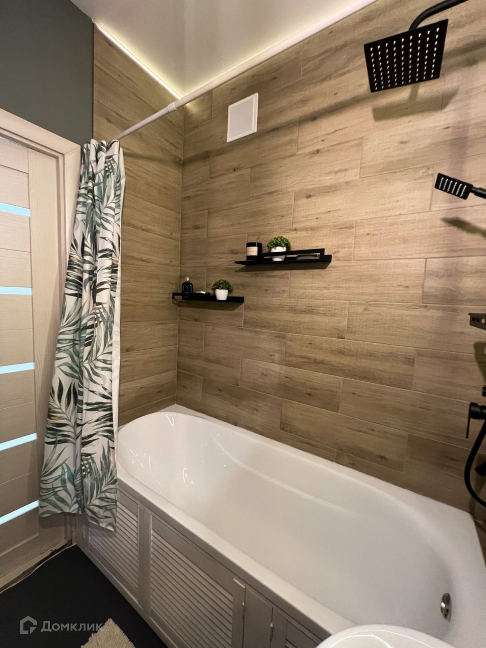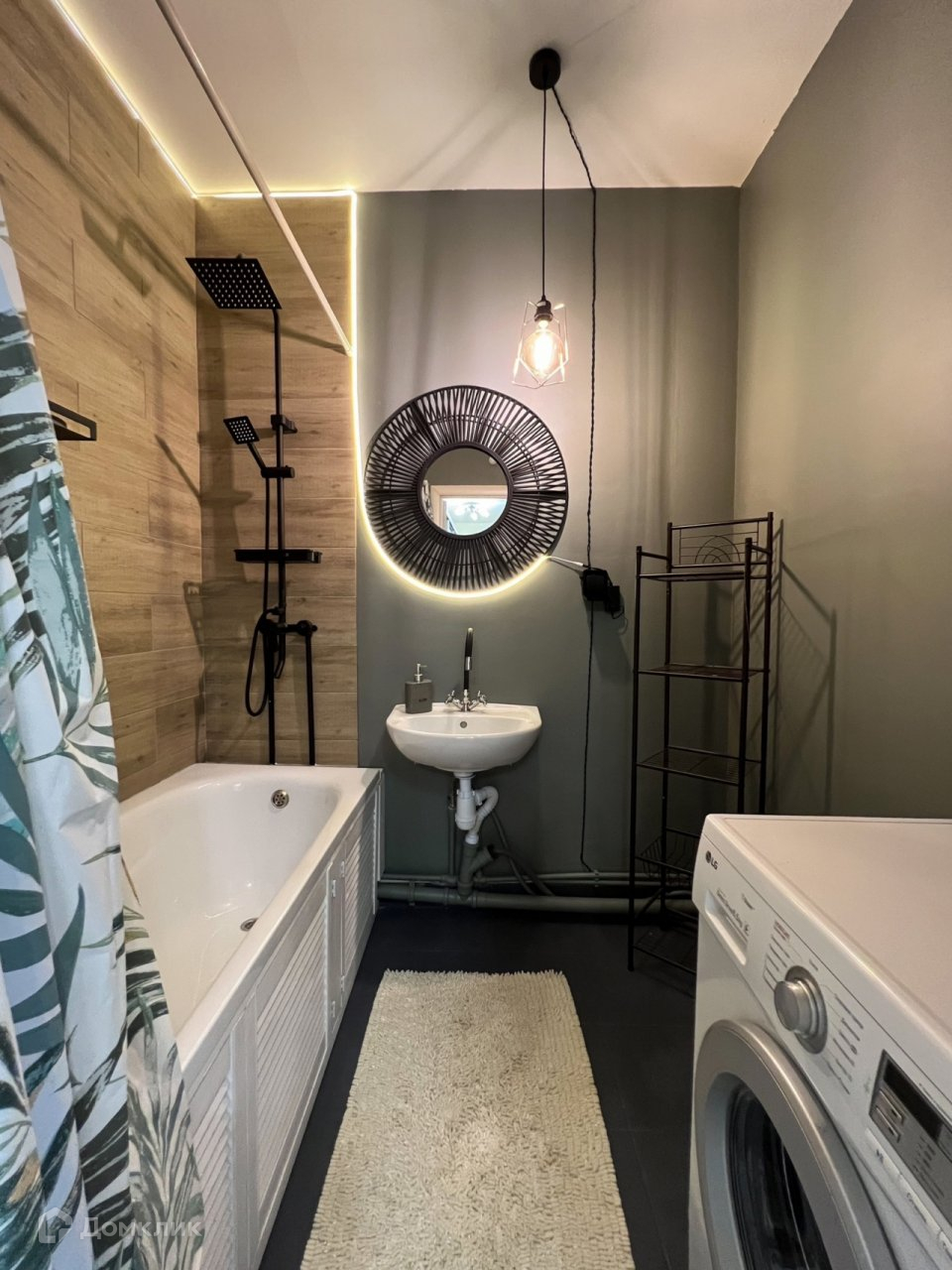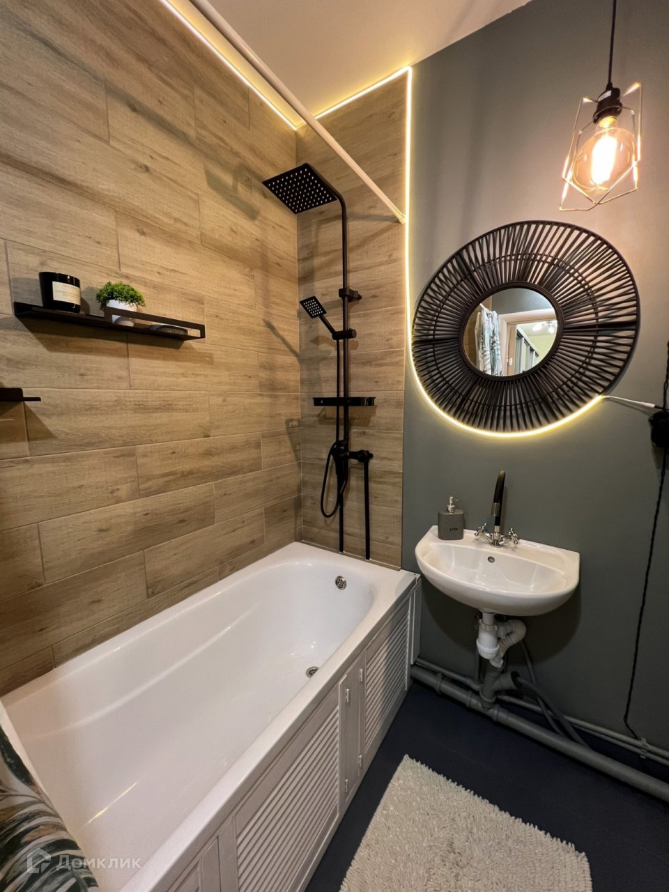 - Ванная комната в современном стиле с подсветкой, керамогранит