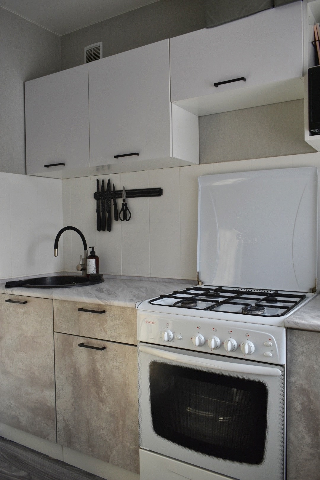 В квартире сделан качественный евроремонт.  Окна ПВХ, потолки натяжные с  освещением, при ремонте использовались современные материалы. Санузел - кафель, трубы ПВХ, счетчики, сантехника в отличном состоянии. Балкон с решетками. Межкомнатные и входная дверь новые. Частично остается мебель - кухонный гарнитур, стенка в гостинной.