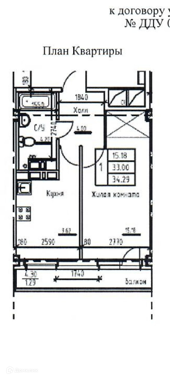 - Общая площадь квартиры 33 кв.м