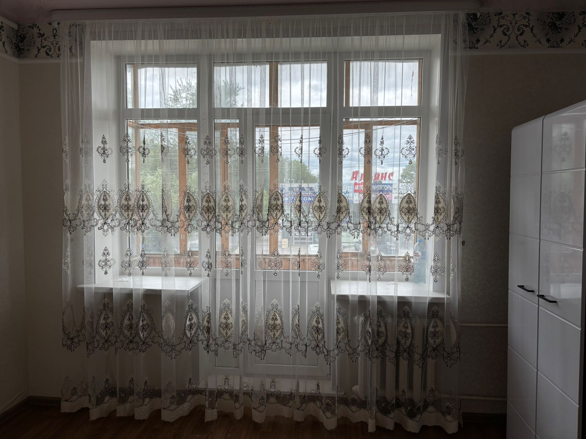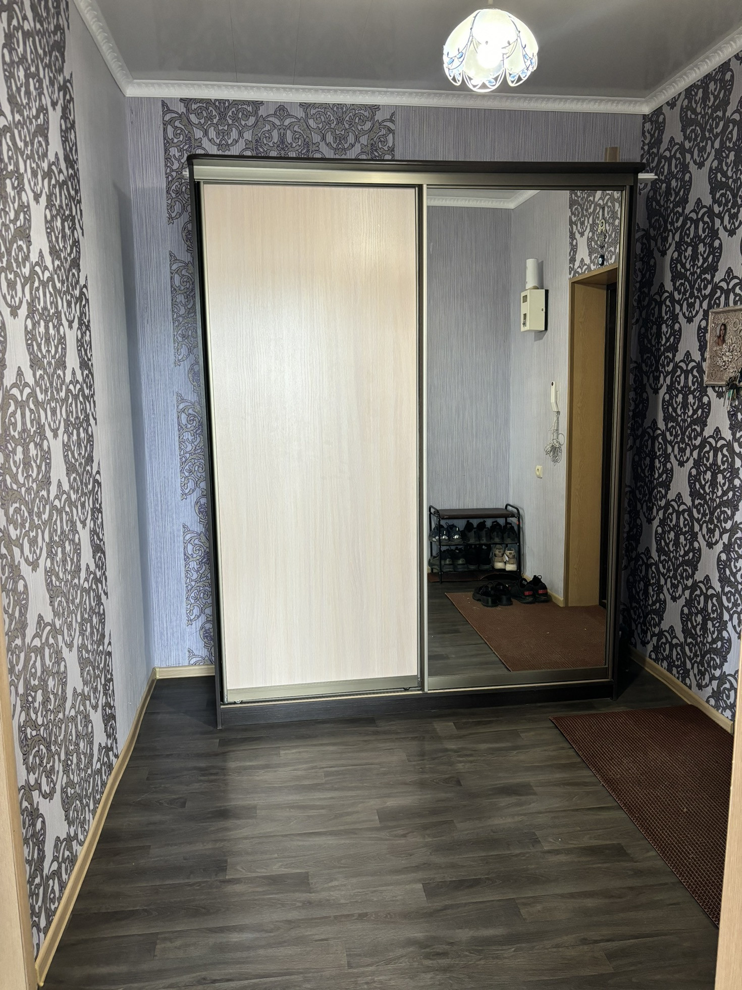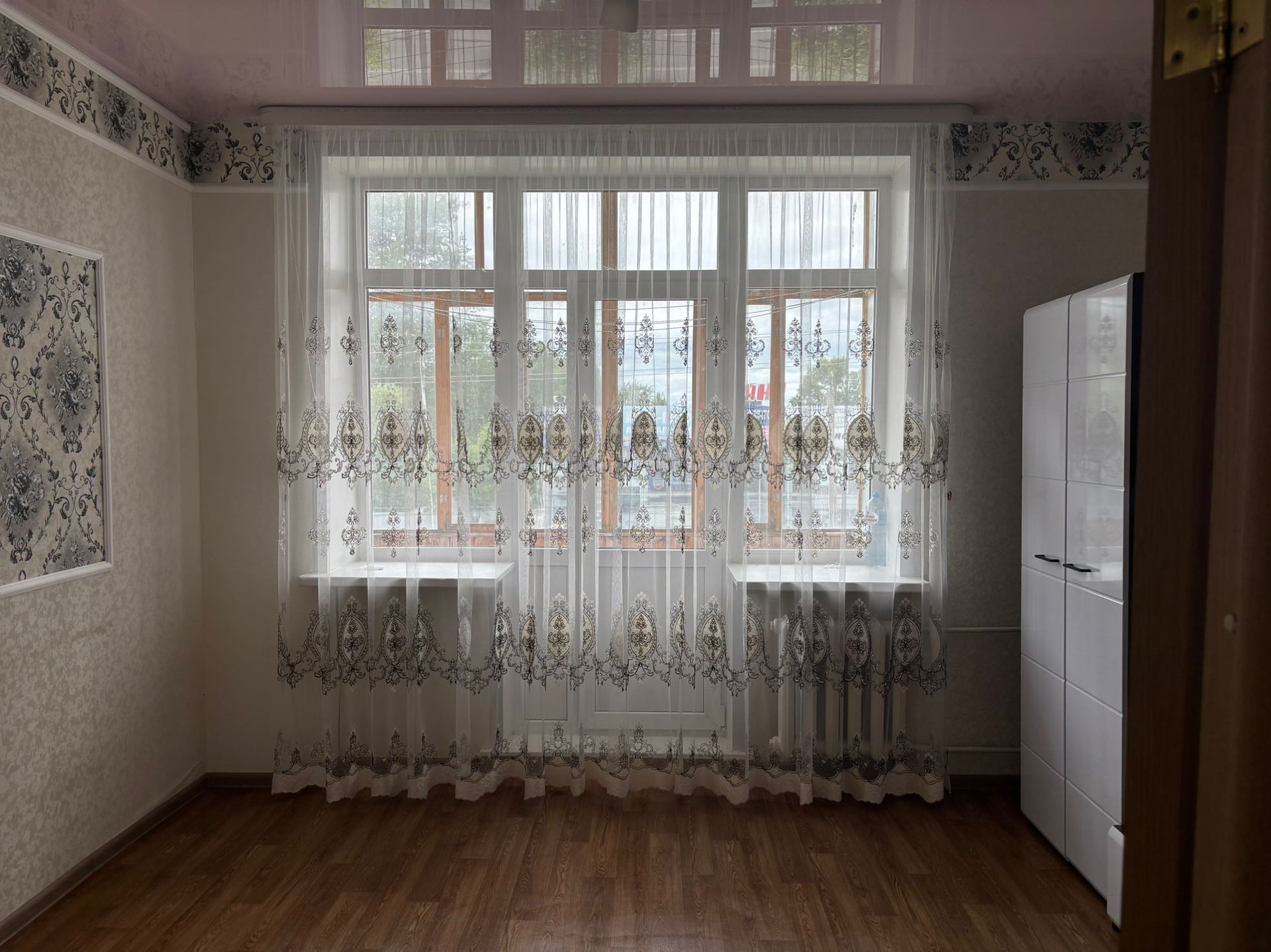 • Состояние хорошее: окна ПВХ, линолеум, установлены прибора учета воды и электроэнергии, поменены межкомнатные и входная двери, натяжные потолки во всей квартире, пол линолеум, отремонтирован подьезд, приличные соседи, санузел панели/ плитка, балкон застеклен, солнечная сторона. Остаётся кухонный гарнитур, шкаф-купе, стенка.