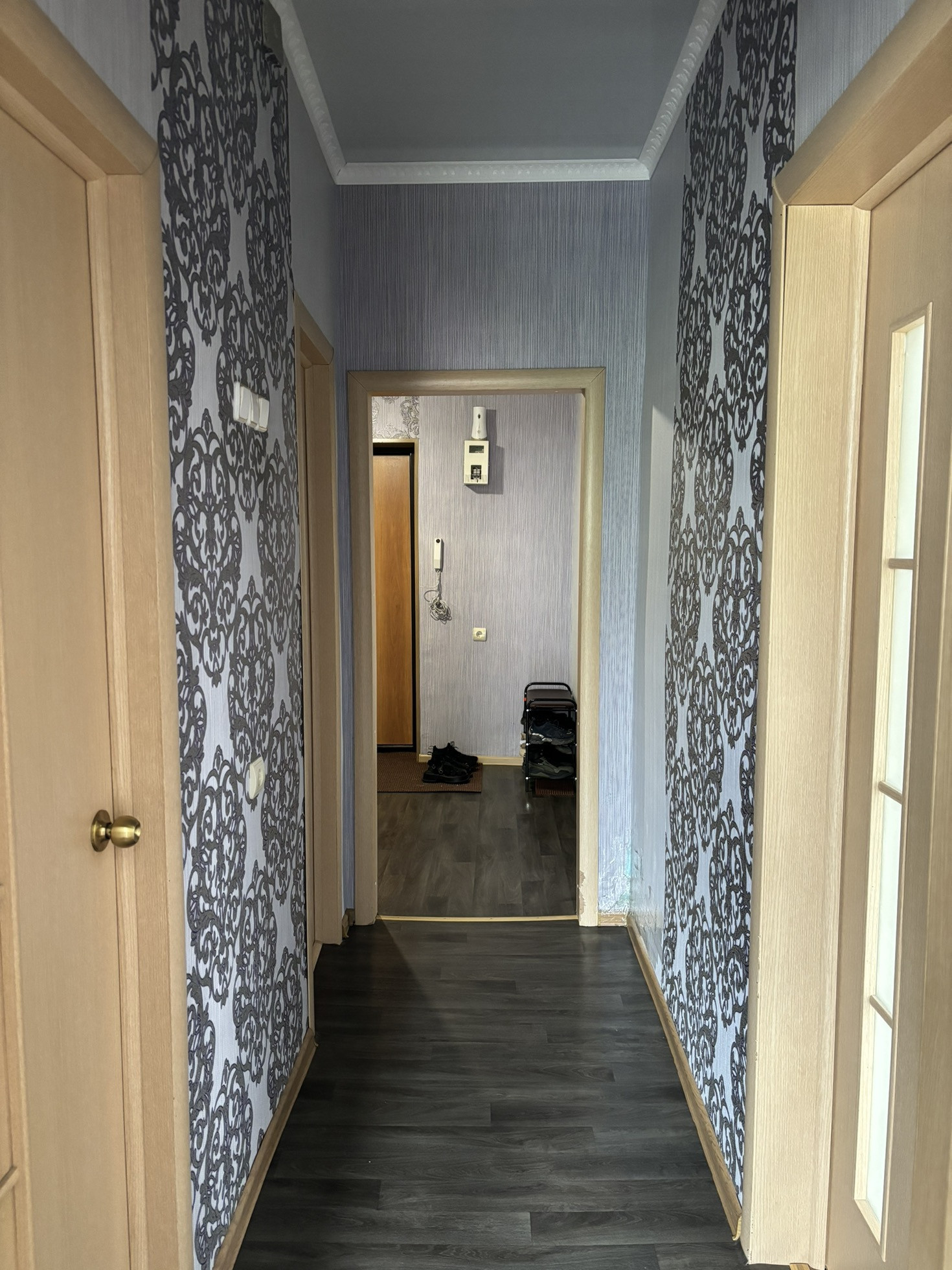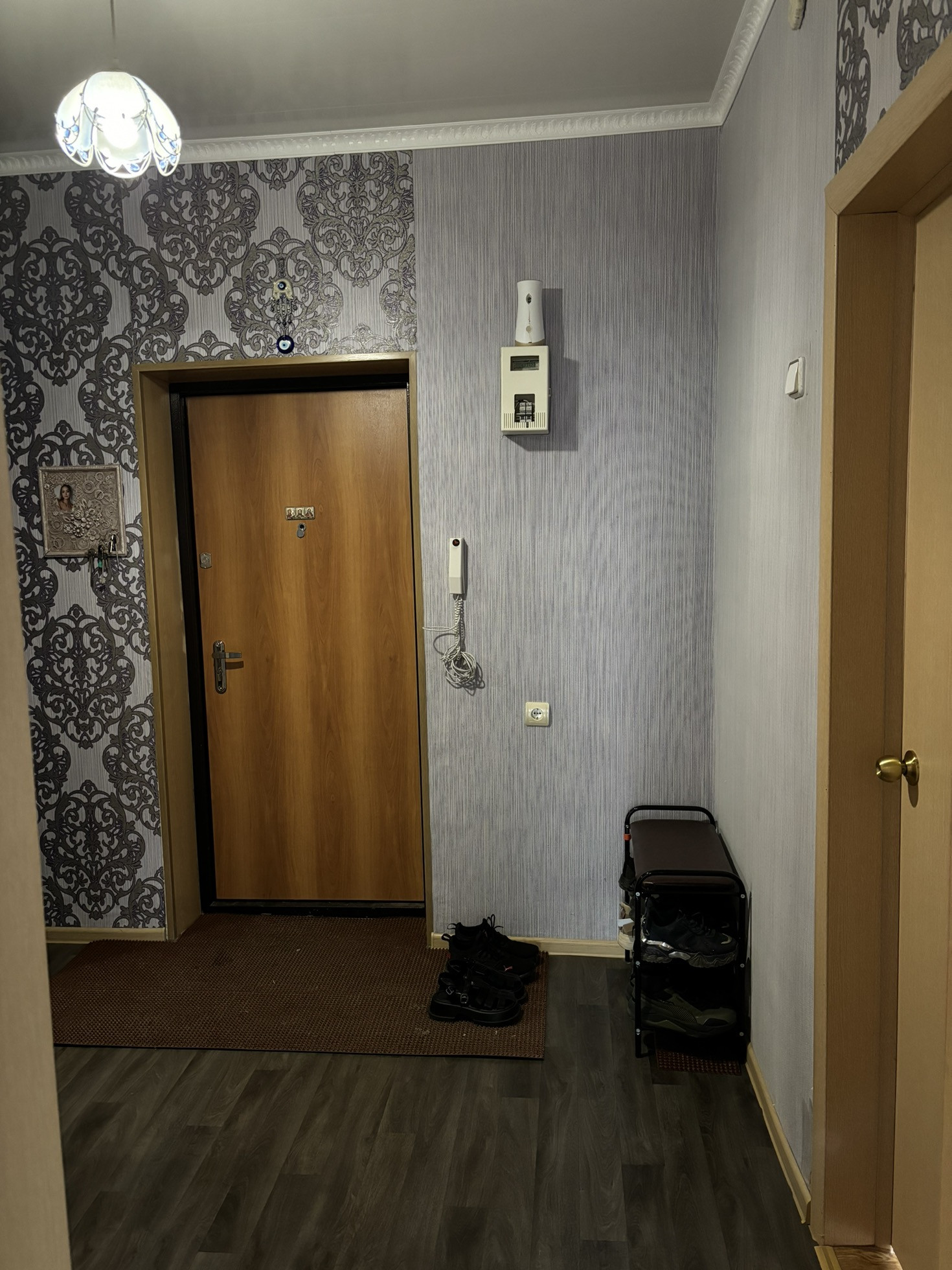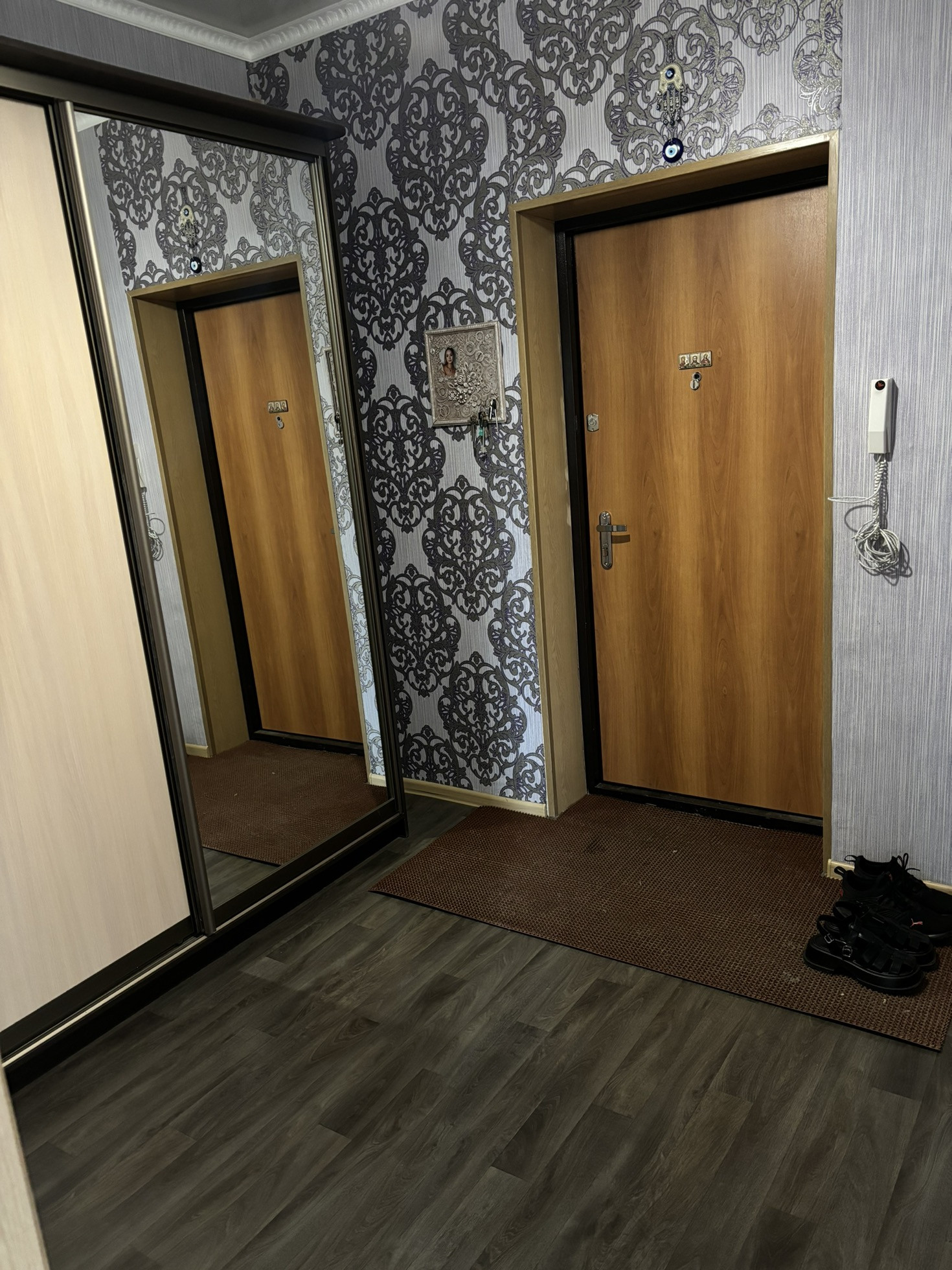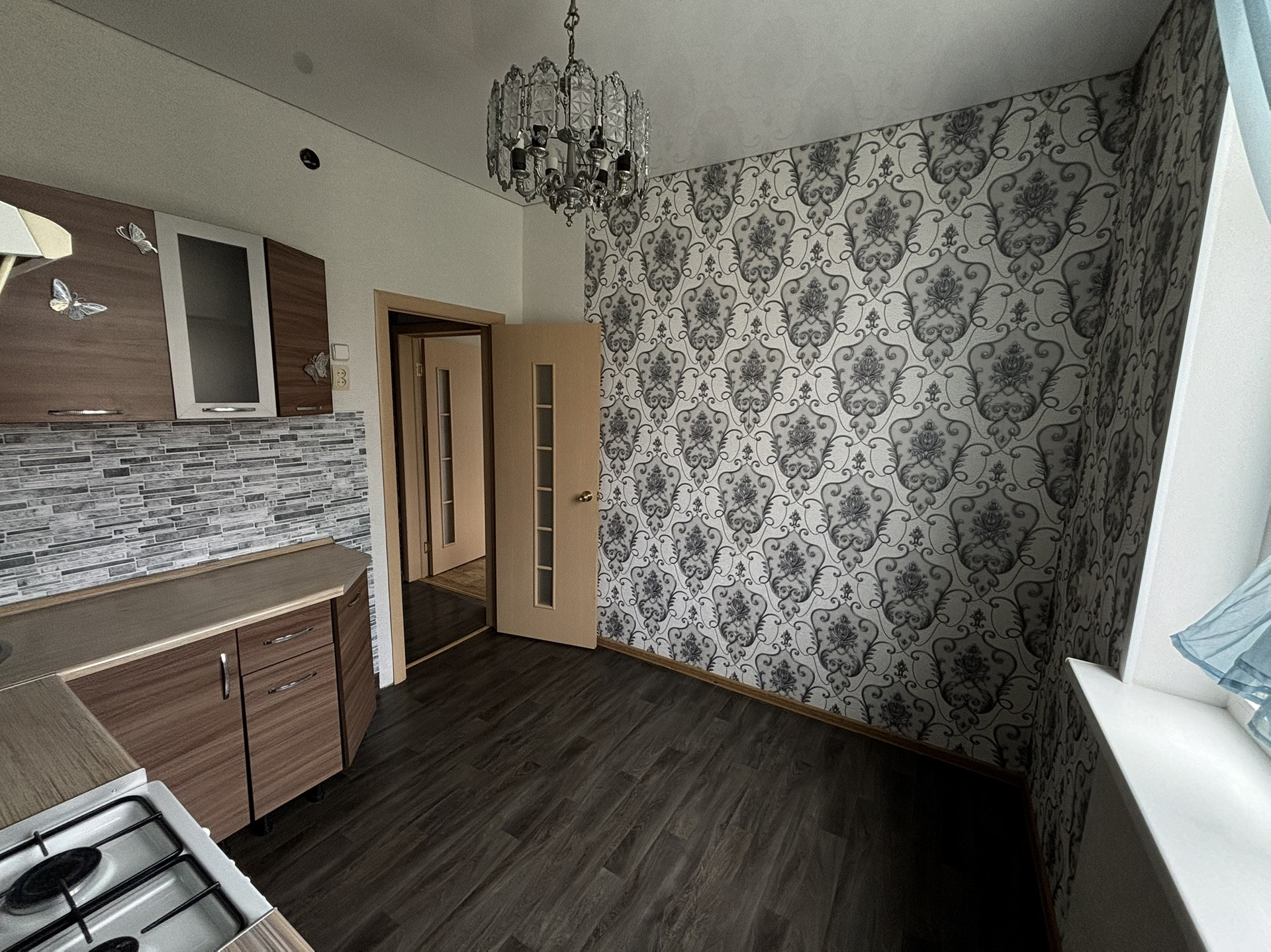 • Состояние хорошее: окна ПВХ, линолеум, установлены прибора учета воды и электроэнергии, поменены межкомнатные и входная двери, натяжные потолки во всей квартире, пол линолеум, отремонтирован подьезд, приличные соседи, санузел панели/ плитка, балкон застеклен, солнечная сторона. Остаётся кухонный гарнитур, шкаф-купе, стенка.