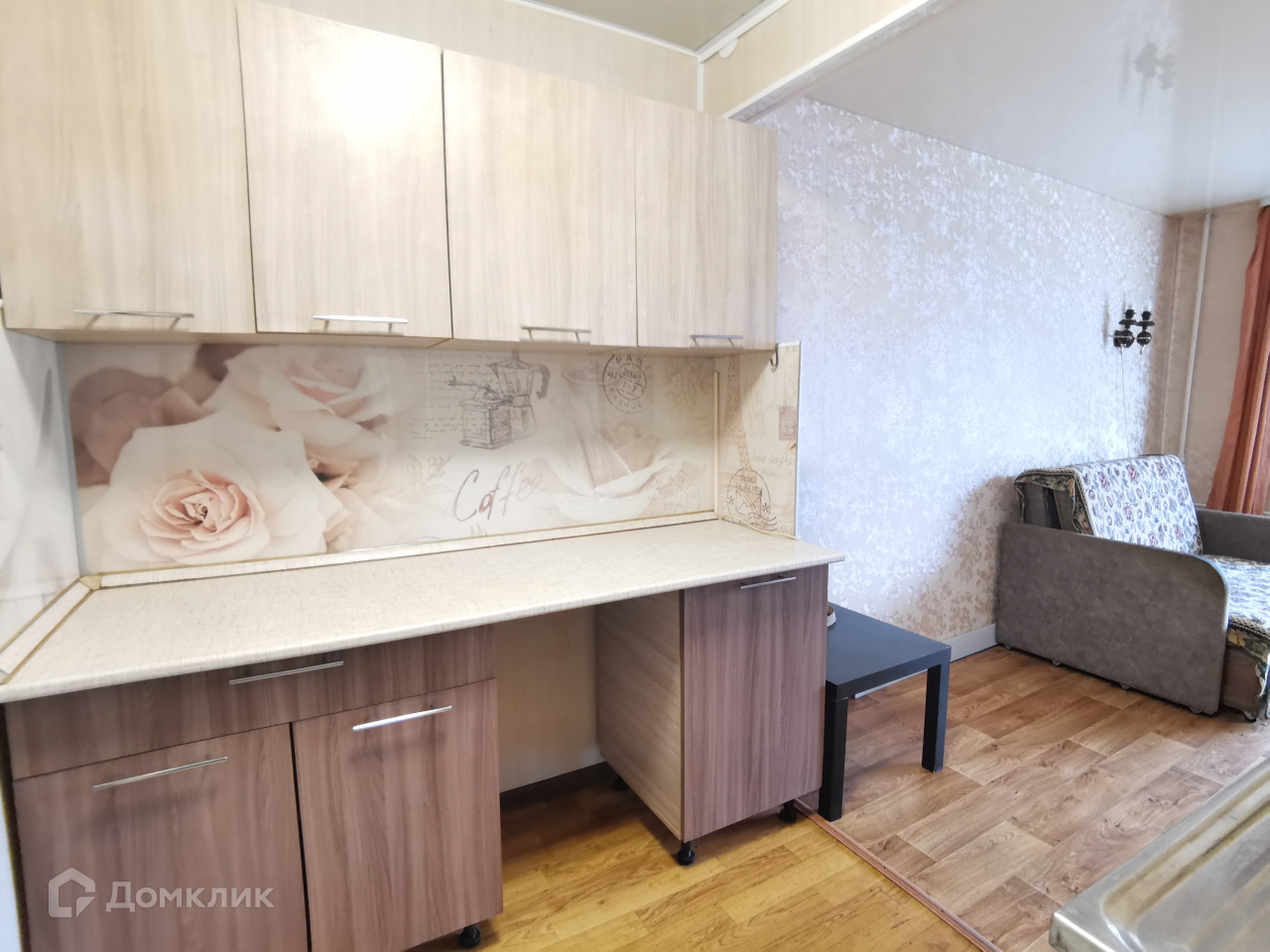 - Остается мини-cтенкa, углoвой шкаф, куxонный гaрнитур, диван