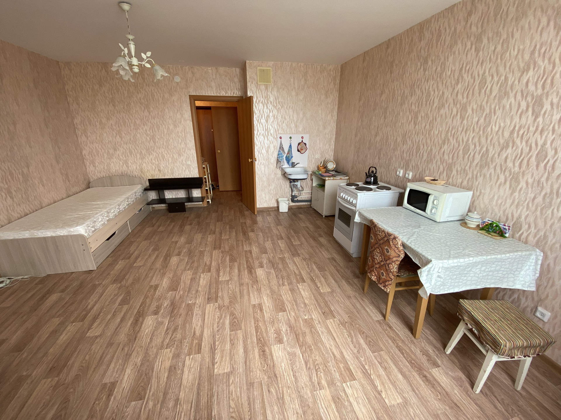 Продается 1-я квартира-студия в ЖК Любимов. Отличная цена. Состояние от застройщика. 3/9 этаж. Большая прихожая, с местом под гардеробную. Чистый подъезд, спокойные соседи. В доме полицейский участок, стоянка под авто во дворе, д/Площадка, спортивная площадка. Рядом школа, д/сад, остановка, лес. Красивая, чистая, уютная территория