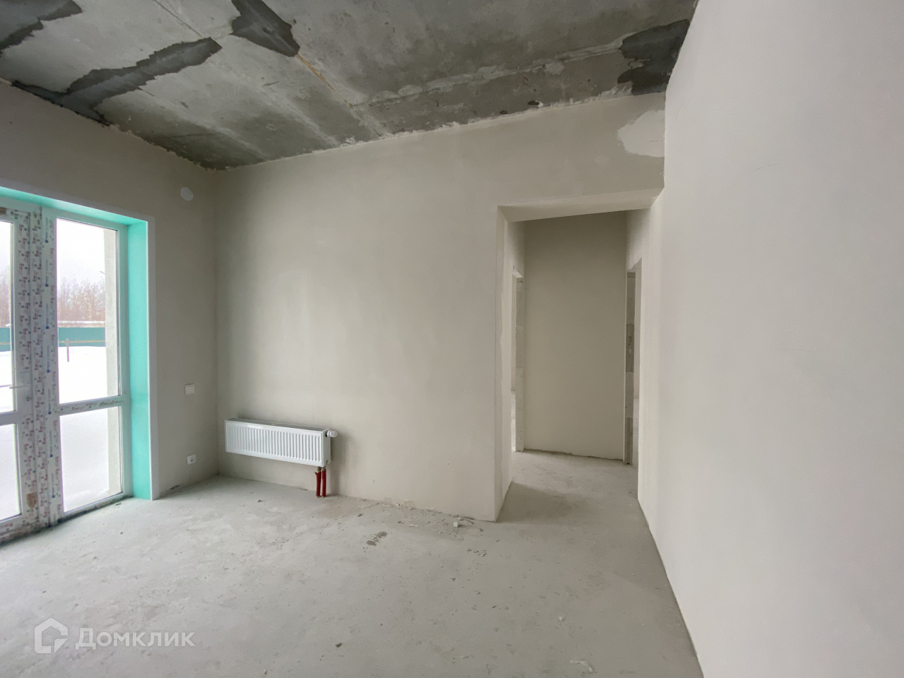 - стены выровнены и готовы к поклейке обоев, на полах стяжка