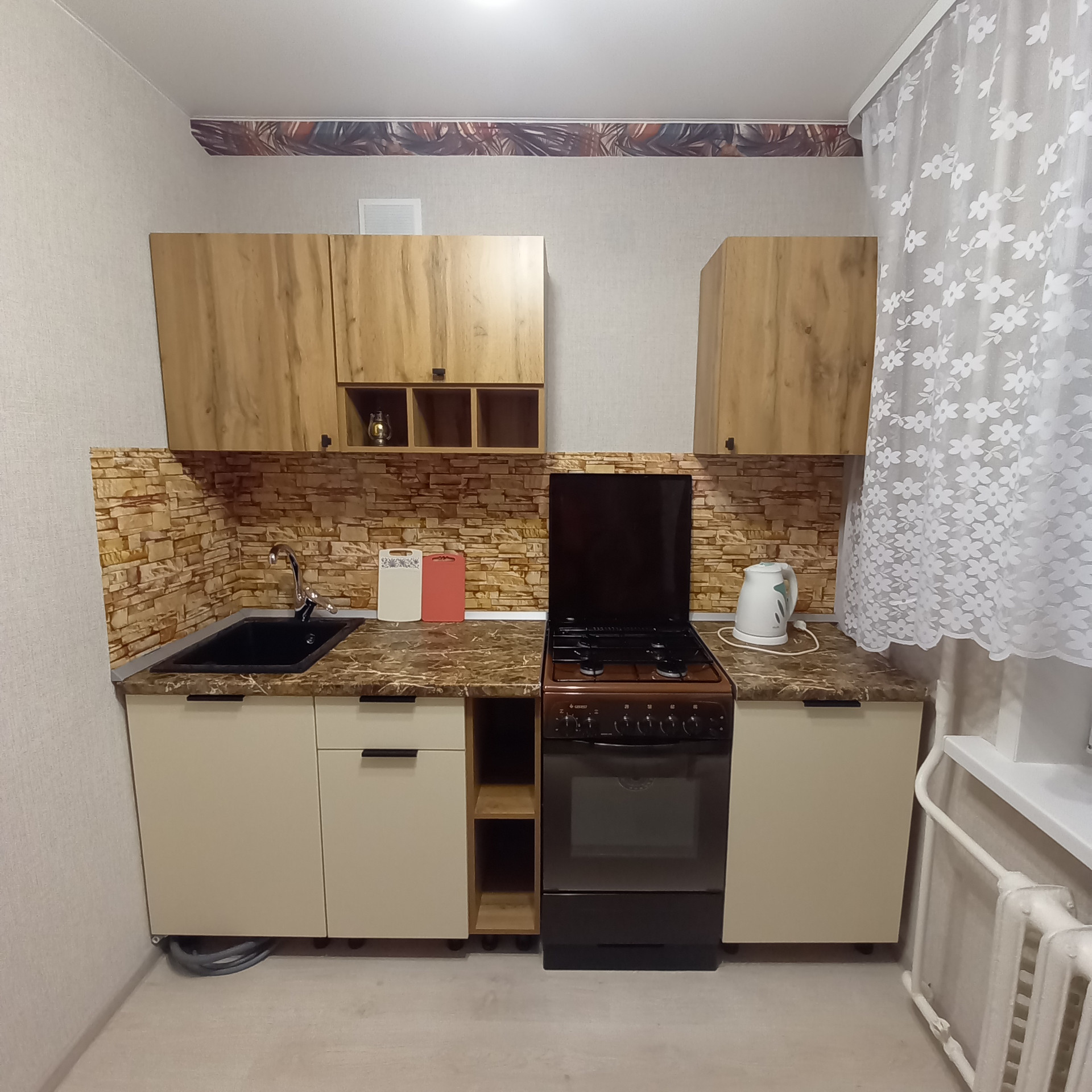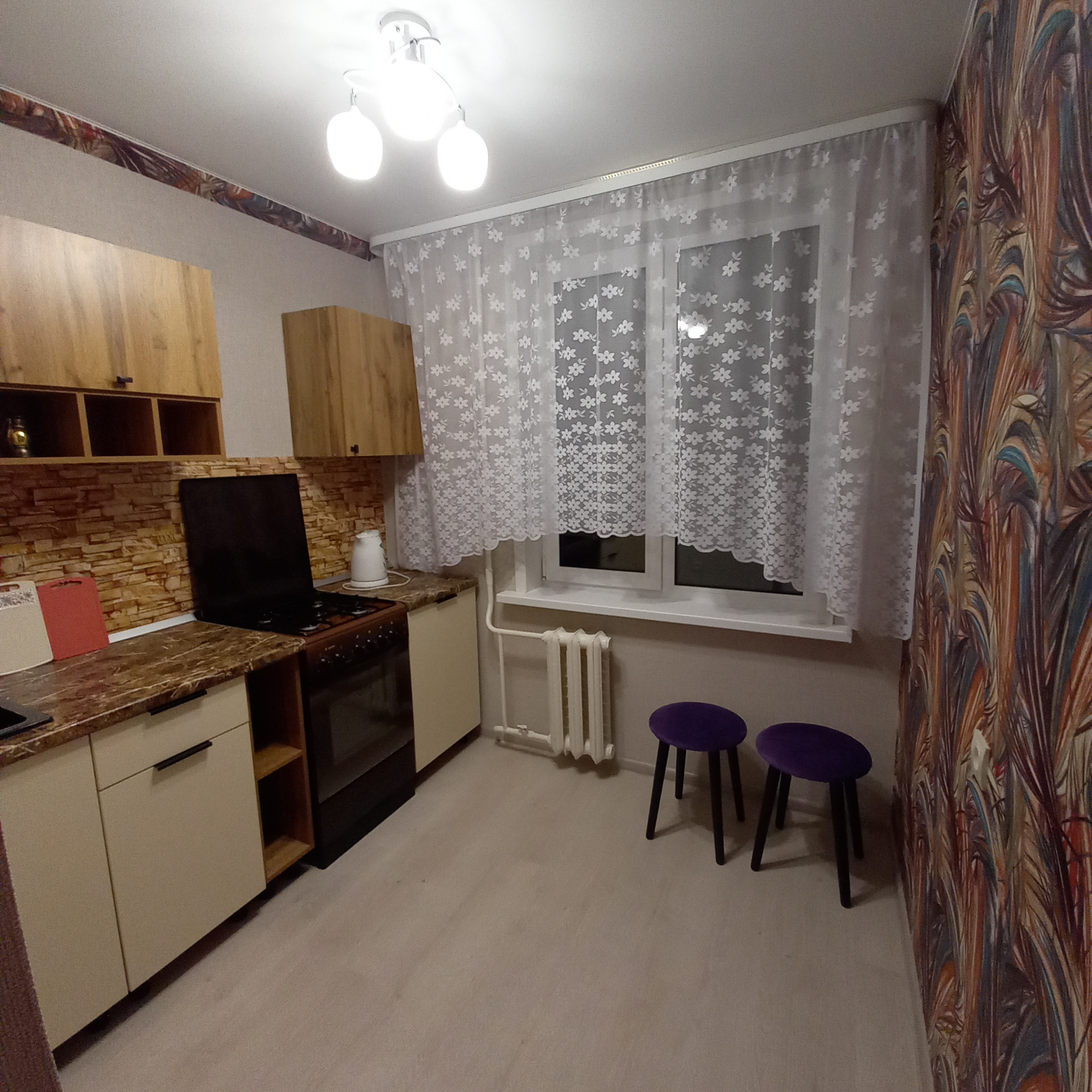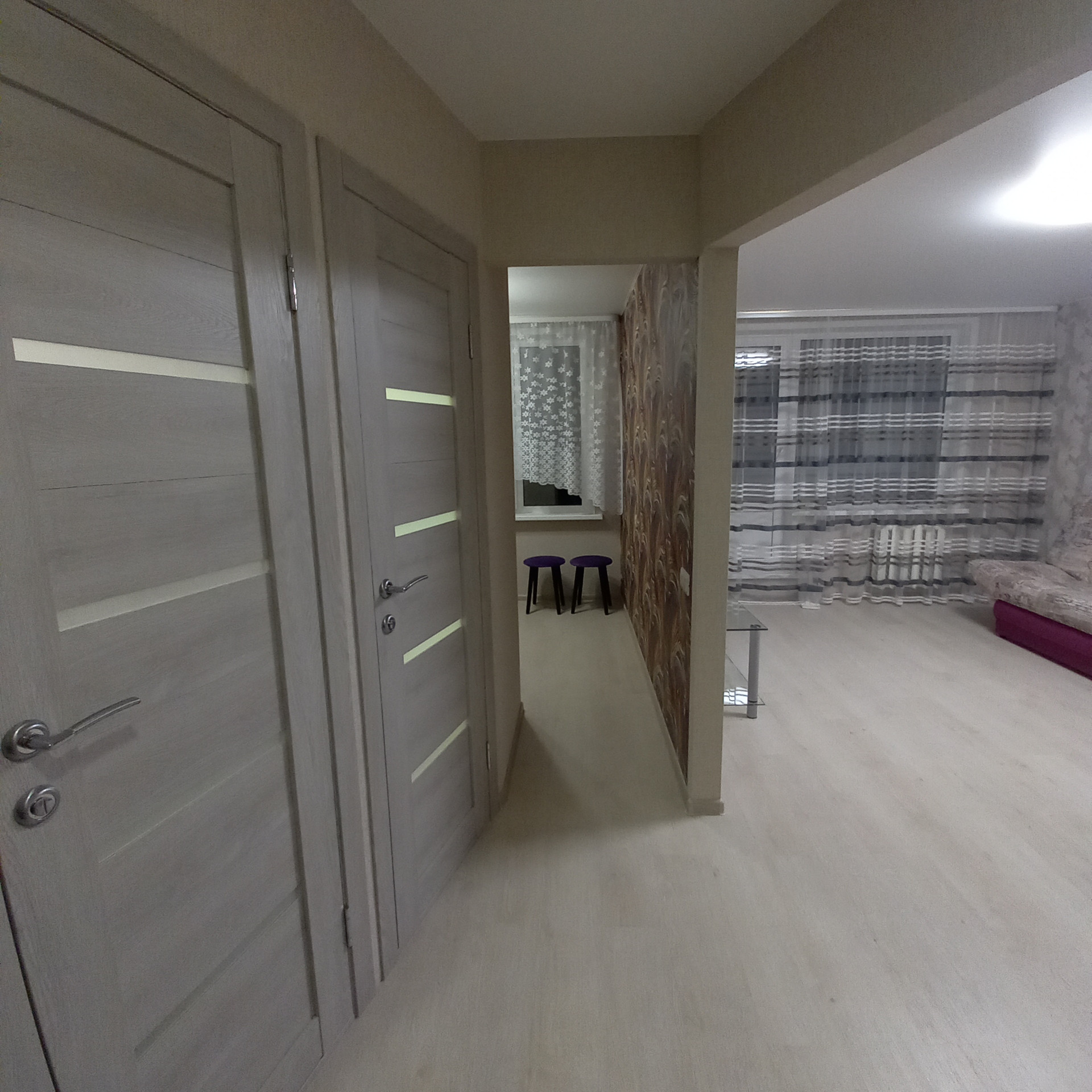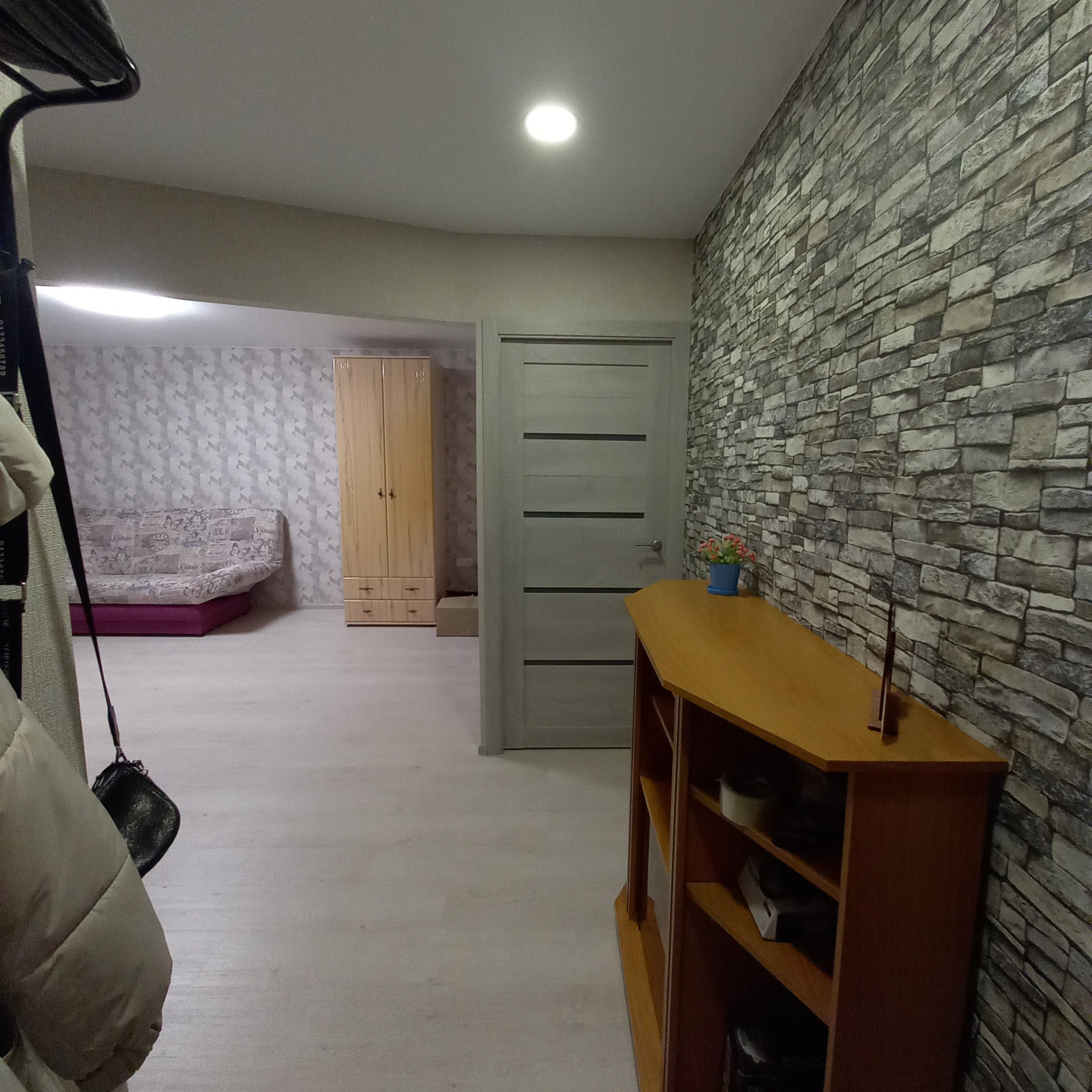 В квартире установлена новая кухня, есть 2-х спальный диван, шкаф для белья, комод и вешалка в прихожей. При необходимости есть возможность укомплектовать вторую комнату под спальню или детскую и завезти холодильник, стиральную машину, телевизор, микроволновку, посуду, постельные принадлежности и другое - все обсуждается при встрече. Для курящих есть застекленный балкон.