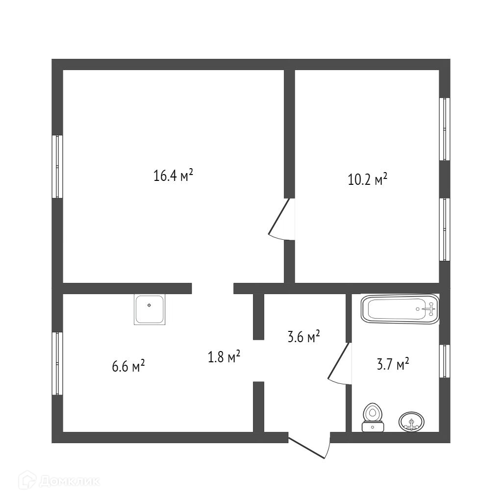 Общая площадь 42.3 м2