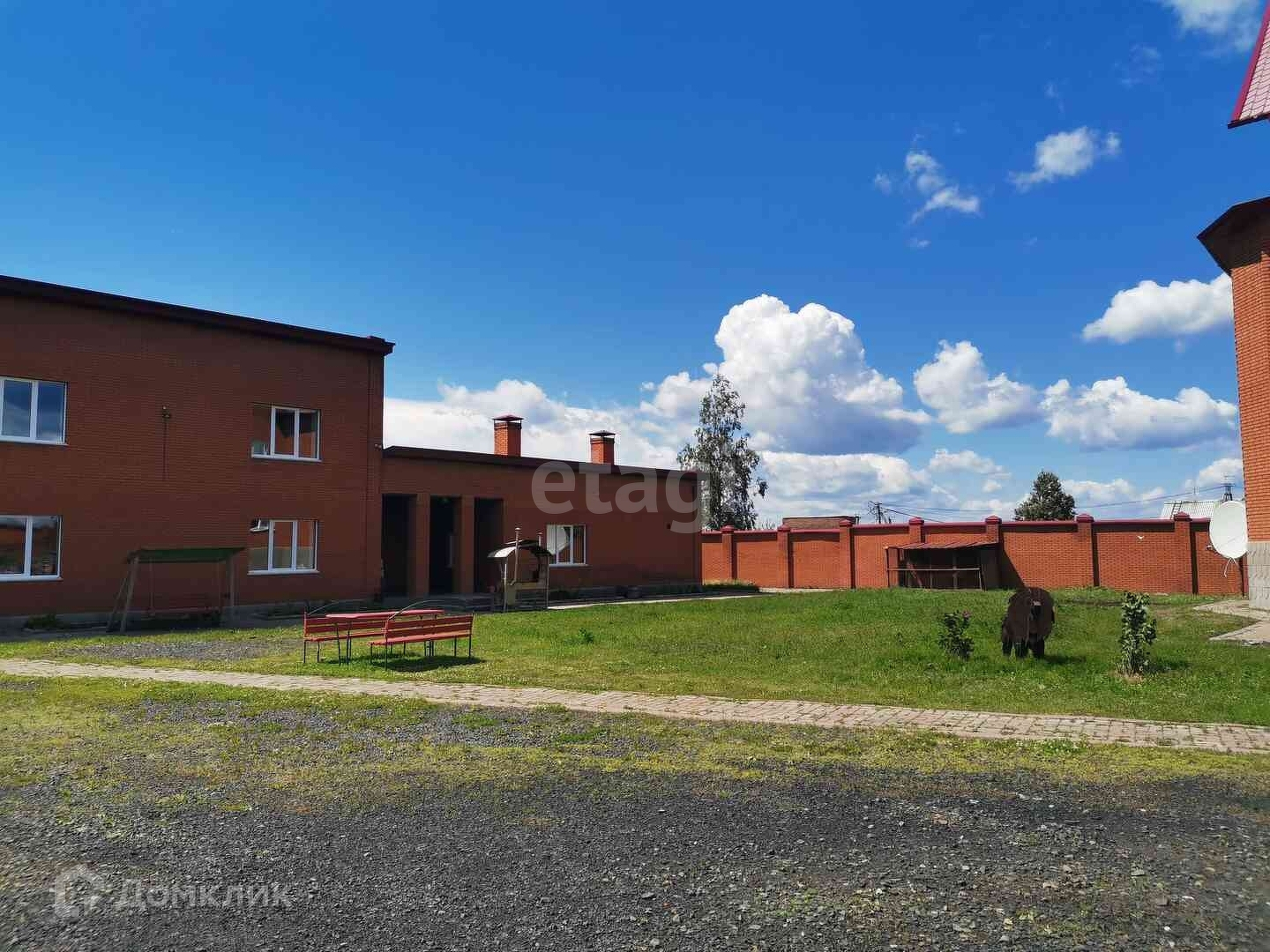 Все домовладение расположено на земельном участке площадью 35 соток с ровным ландшафтом и по периметру имеет кирпичное ограждение.