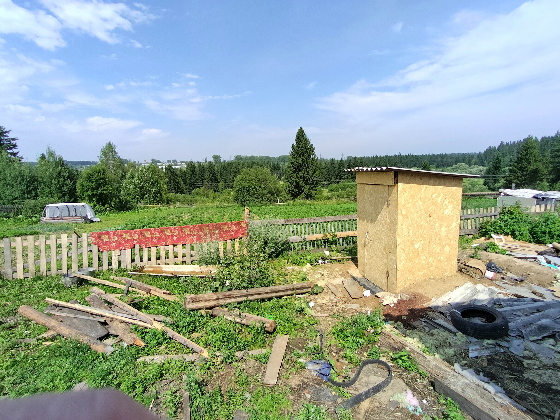 Постройки: летняя кухня, баня, стайки, сарай, шлакоблочный гараж.