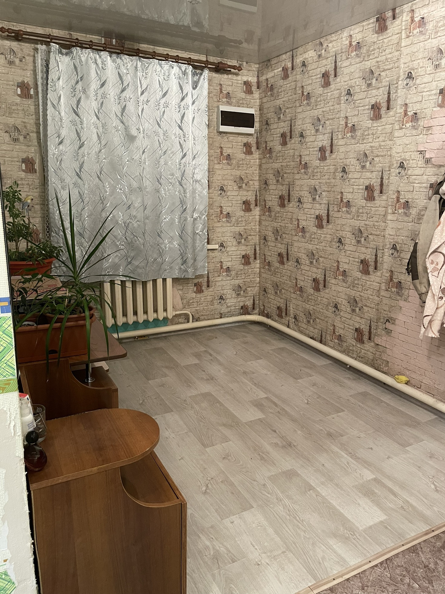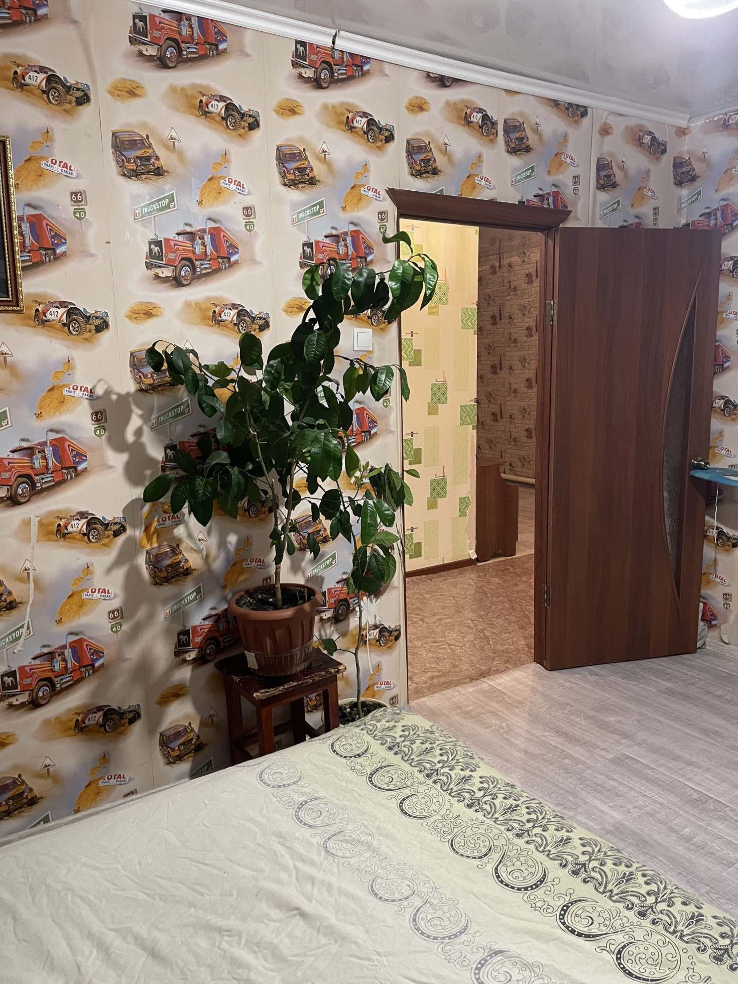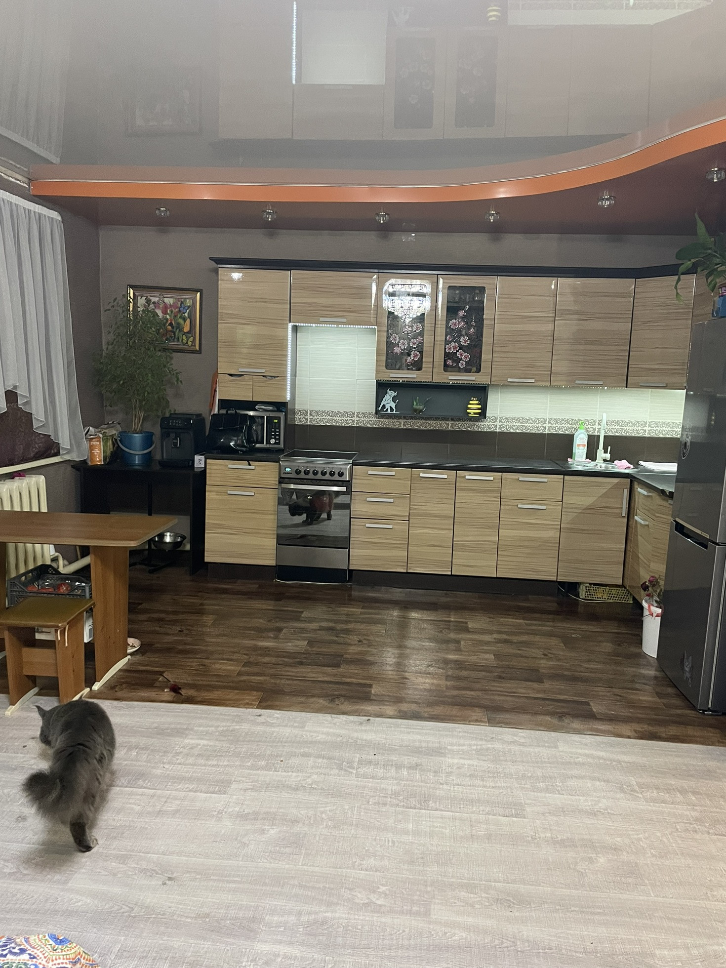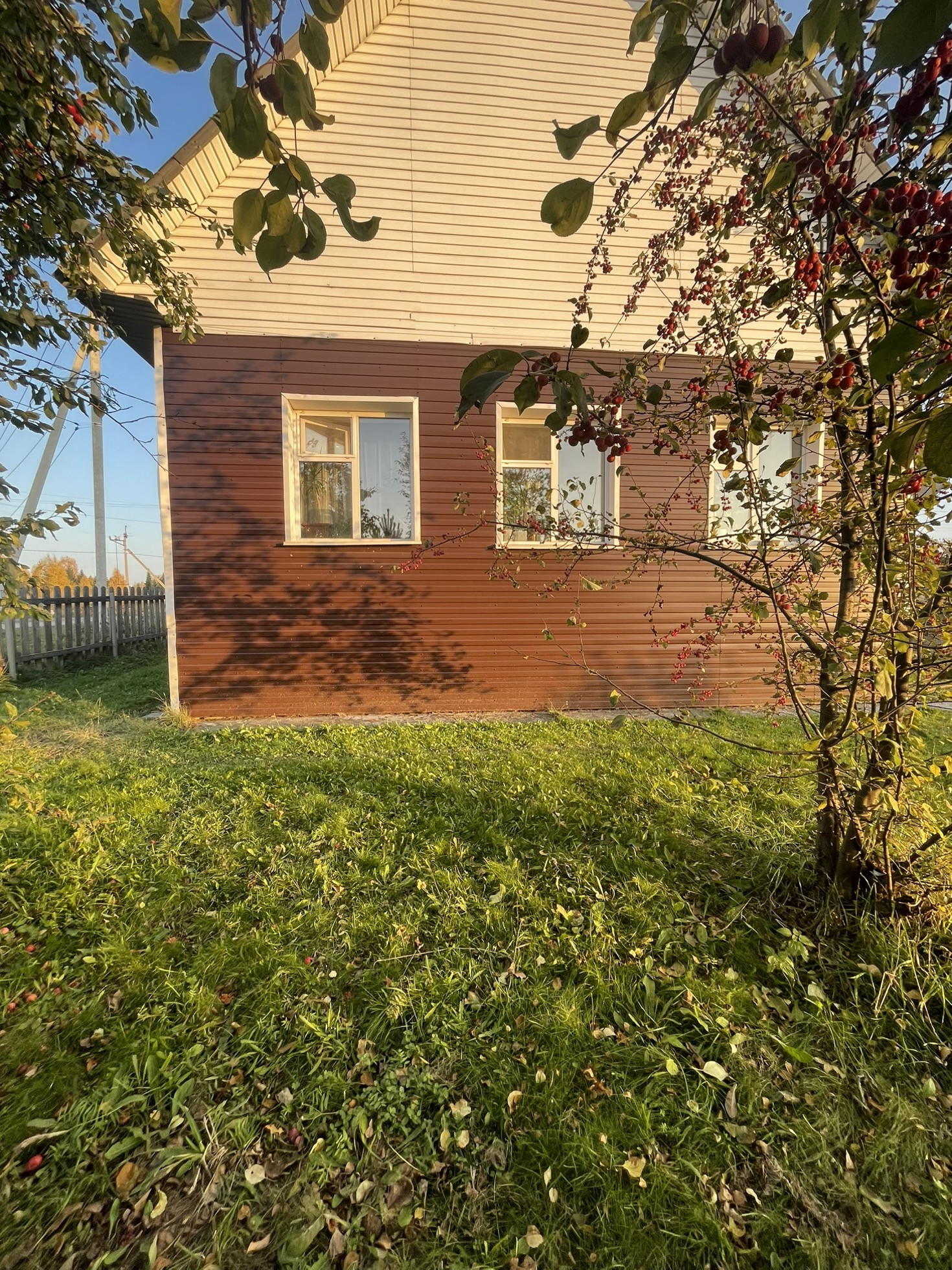 Сад с яблоками… просто космос… натяжные потолки новый линолеум .коридор и одна спальня не успели сделать косметически ремонт… остальное все свежее чистое))