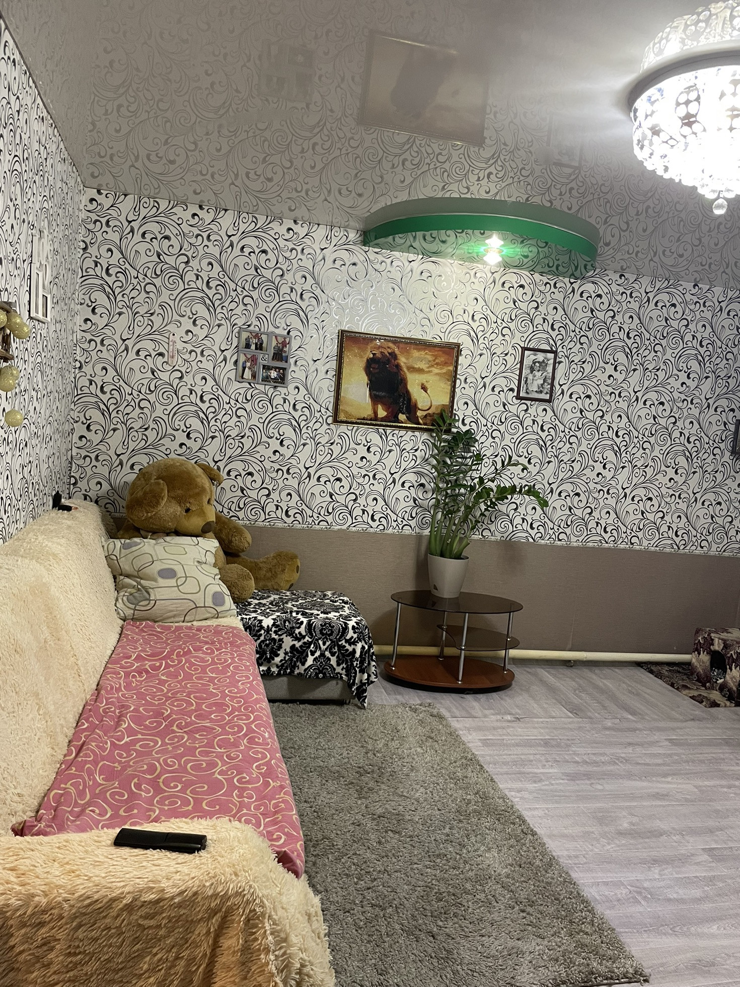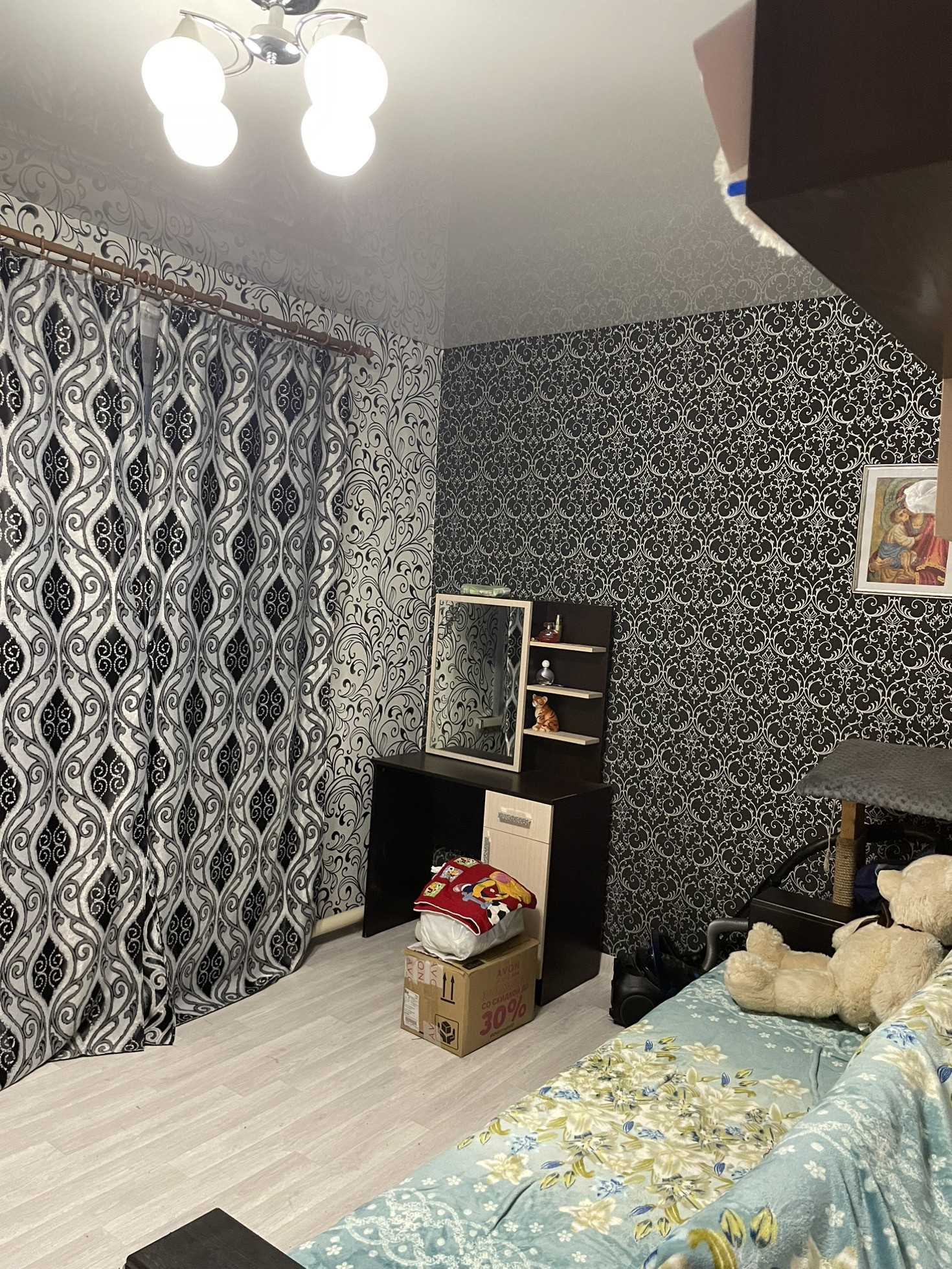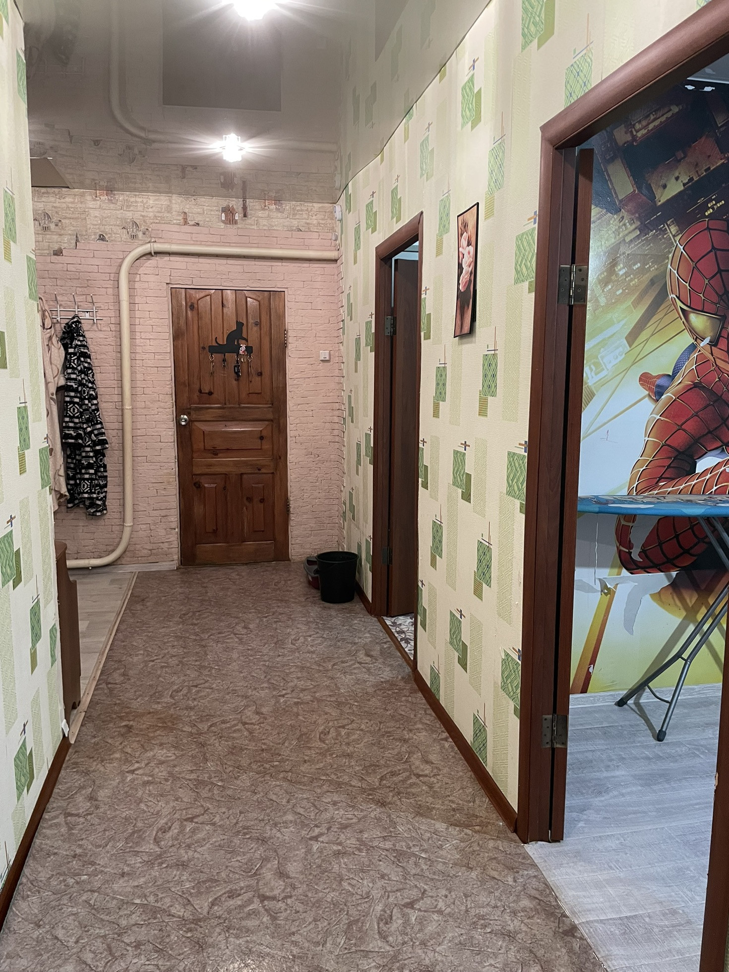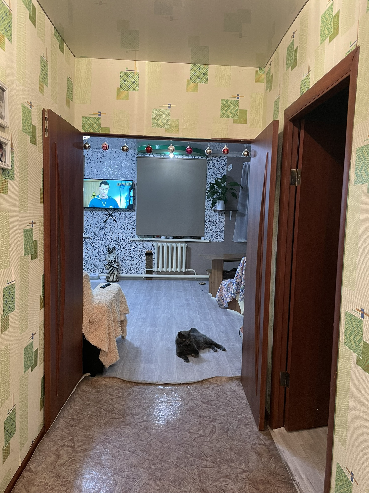 Сад с яблоками… просто космос… натяжные потолки новый линолеум .коридор и одна спальня не успели сделать косметически ремонт… остальное все свежее чистое))