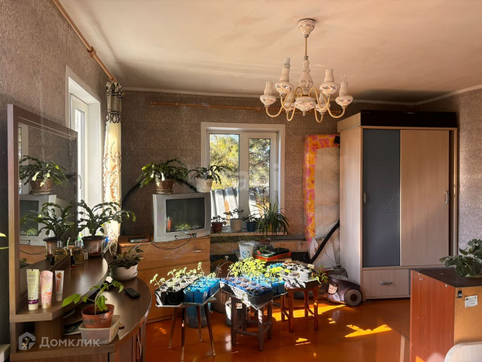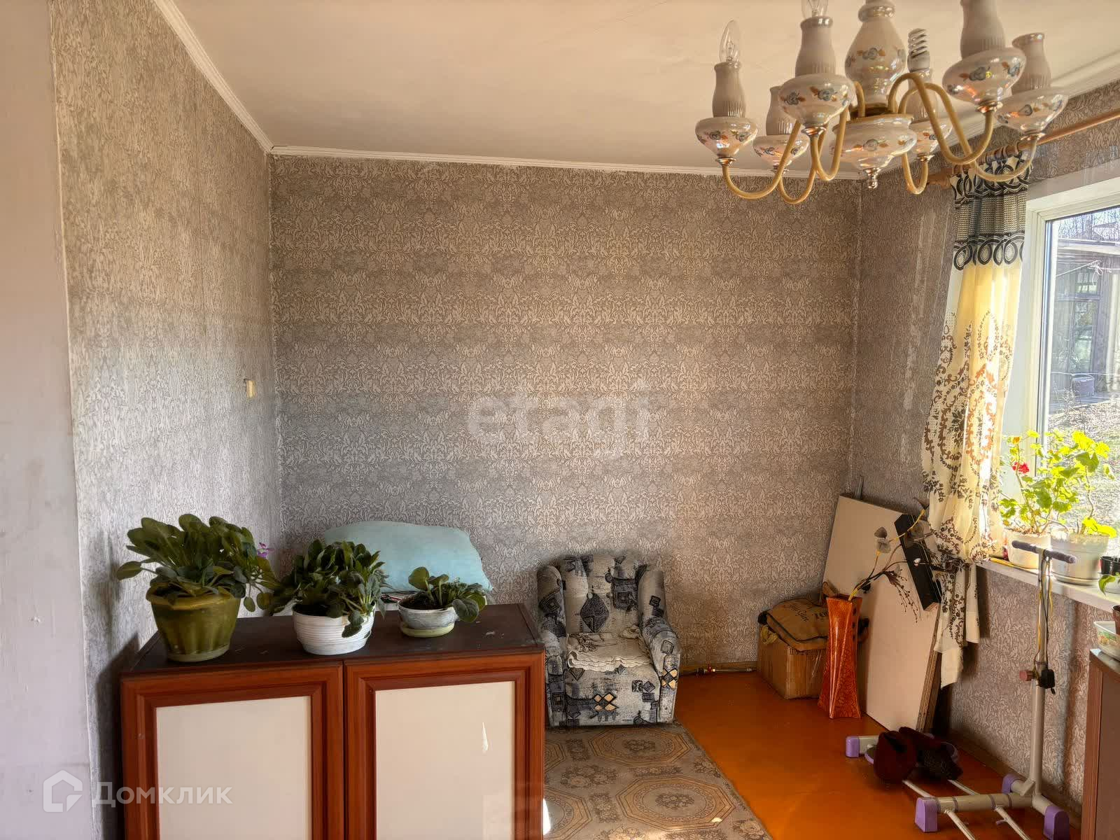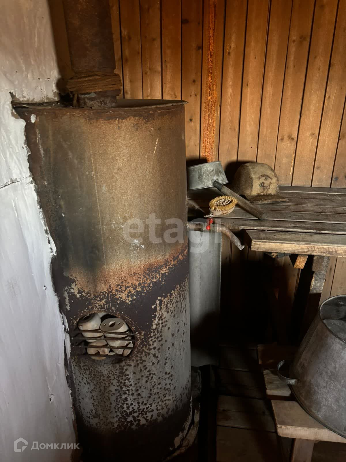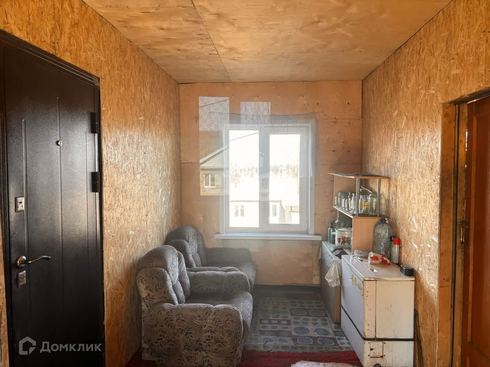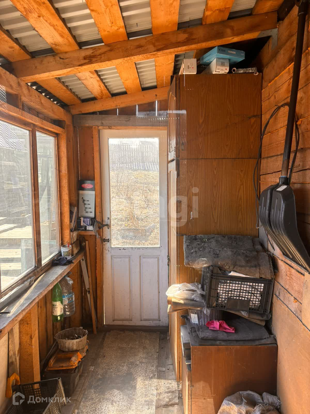 Дом деревянный(бревно), подойдет как для круглогодичного проживания, так и под дачу. В доме две зоны для отдыха ,кухня и гостиная. Потолок из гипсокартона, на полу ДВП. Ремонт если и нужен, то незначительный.