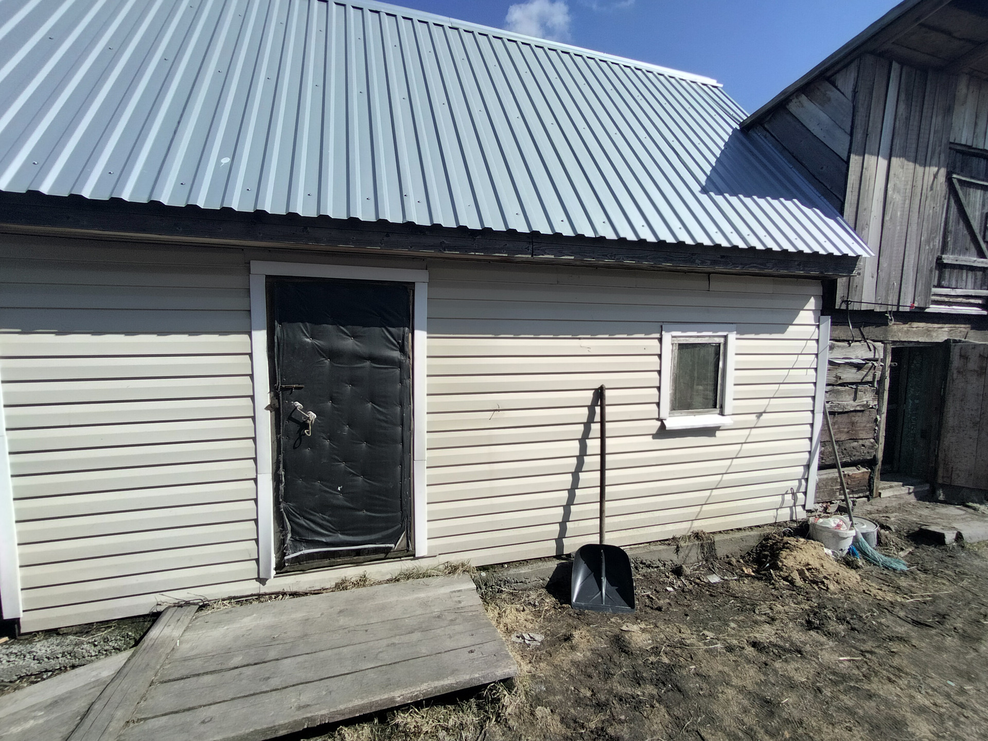 Замечательная банька. Есть стайки. Гараж. Углярка-дровенник.