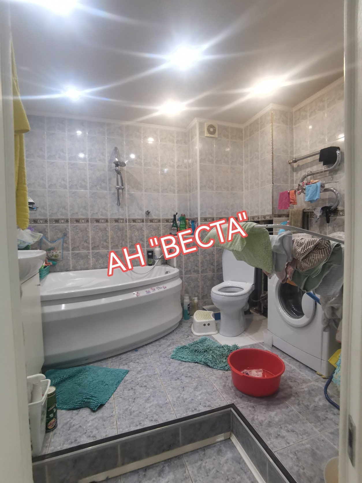 санузел совмещён, стены оформлены кафелем.