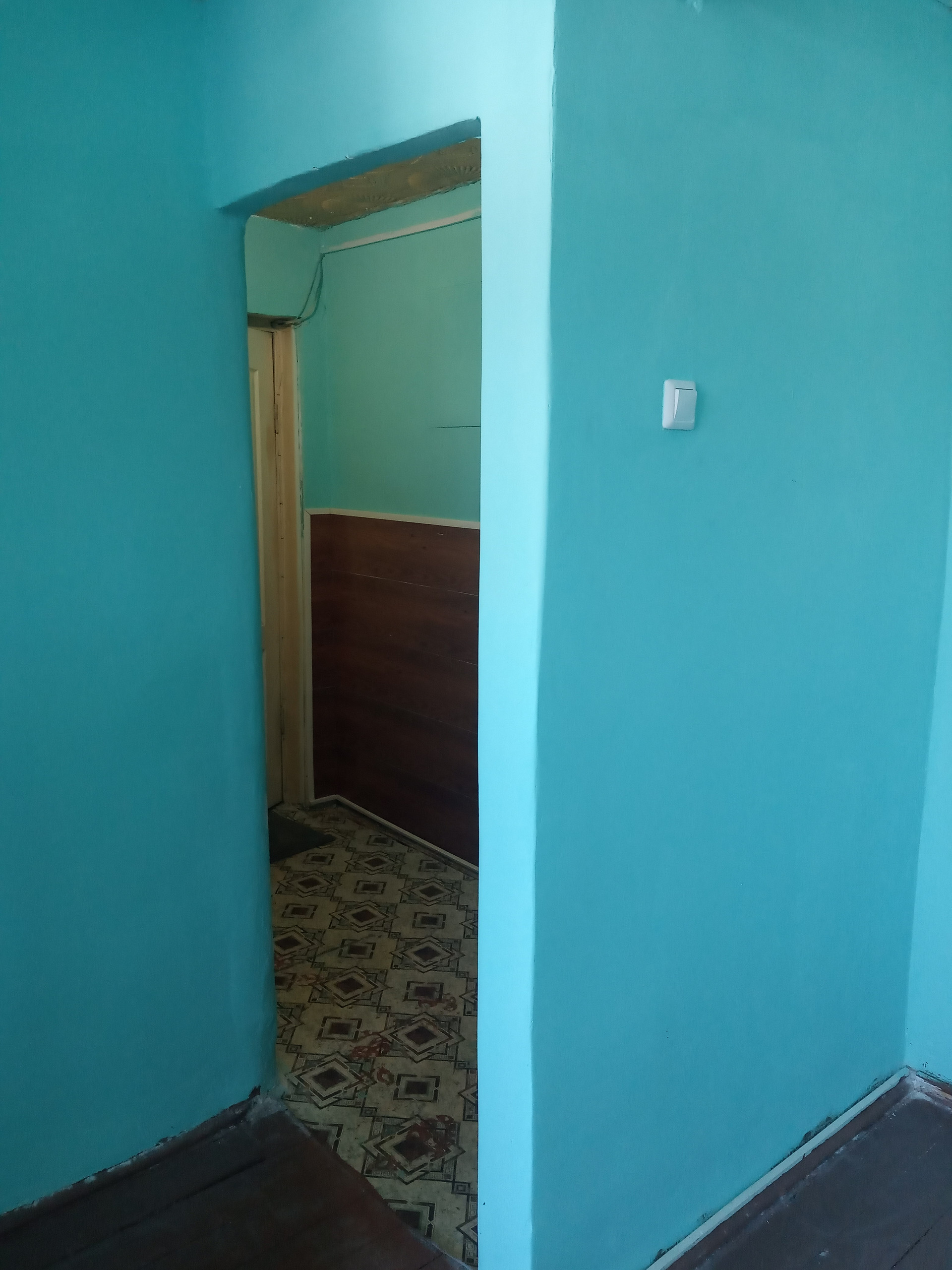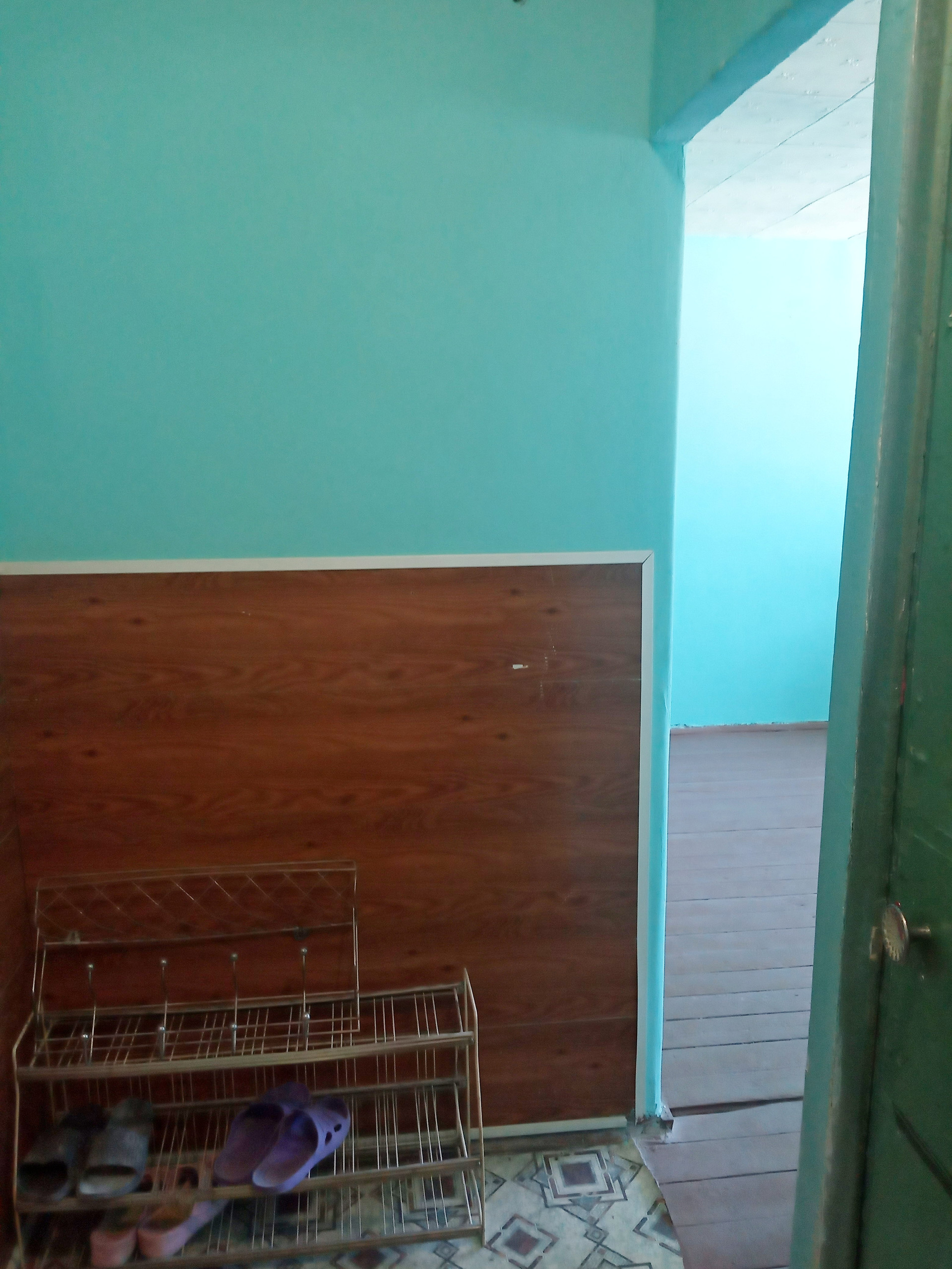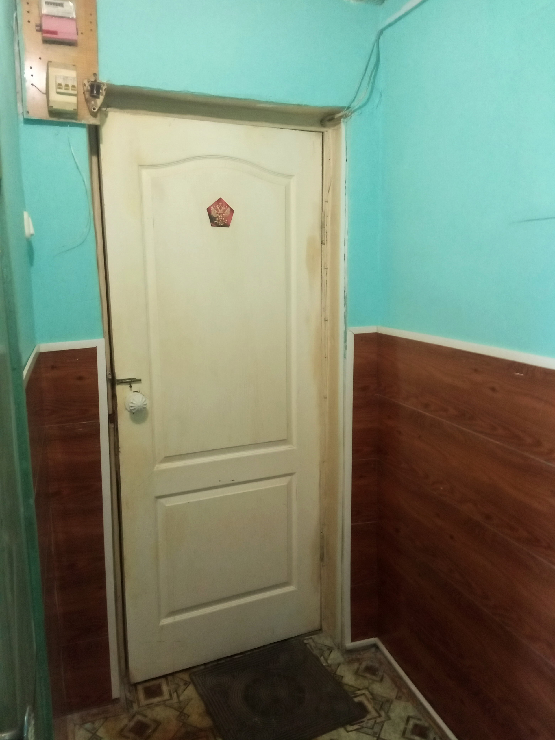 Входная дверь двойная: железная и деревянная обшитая.