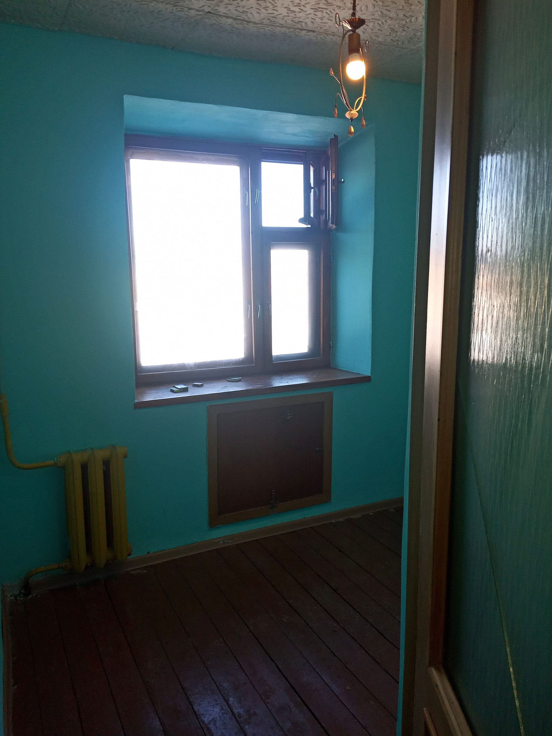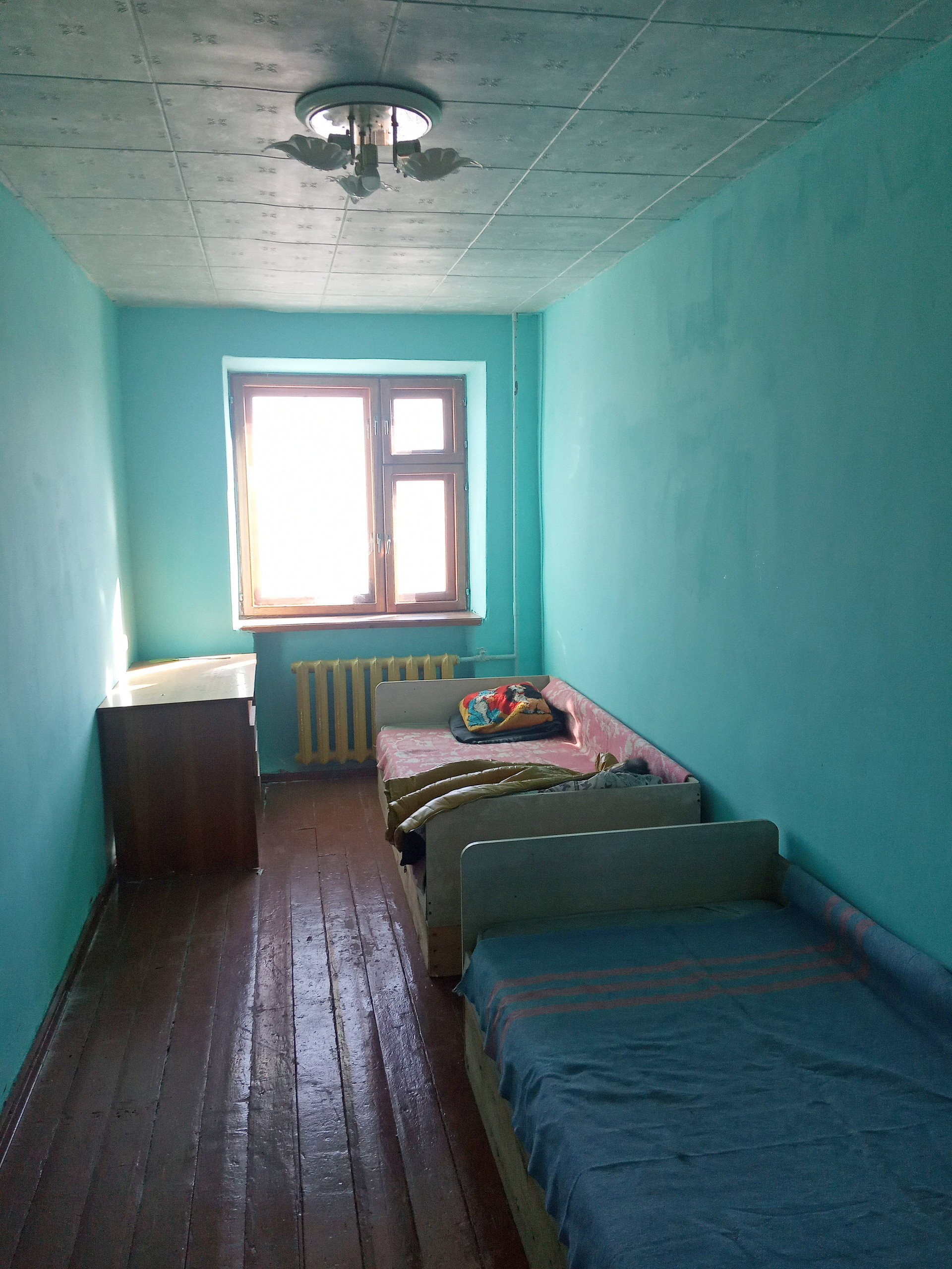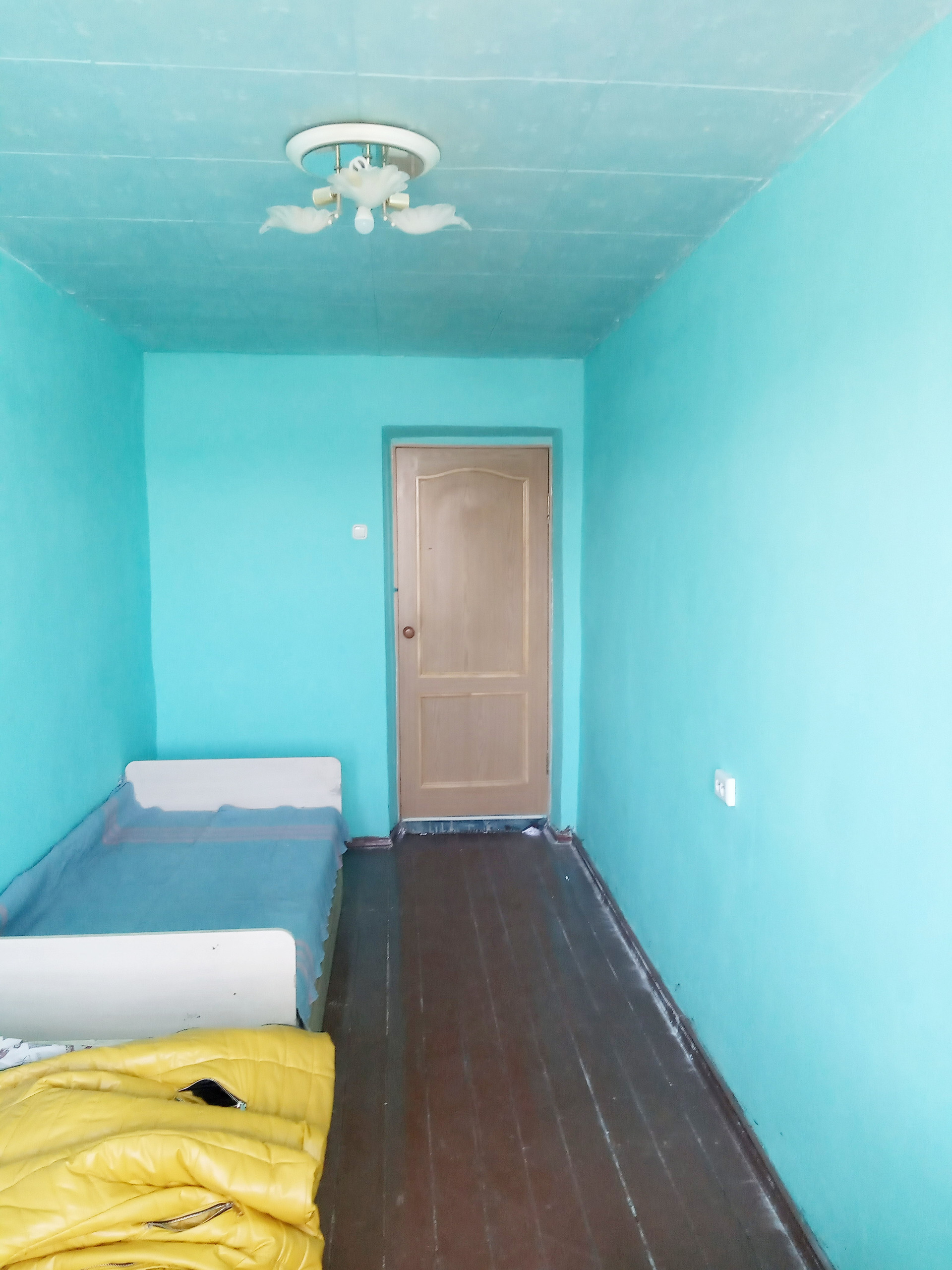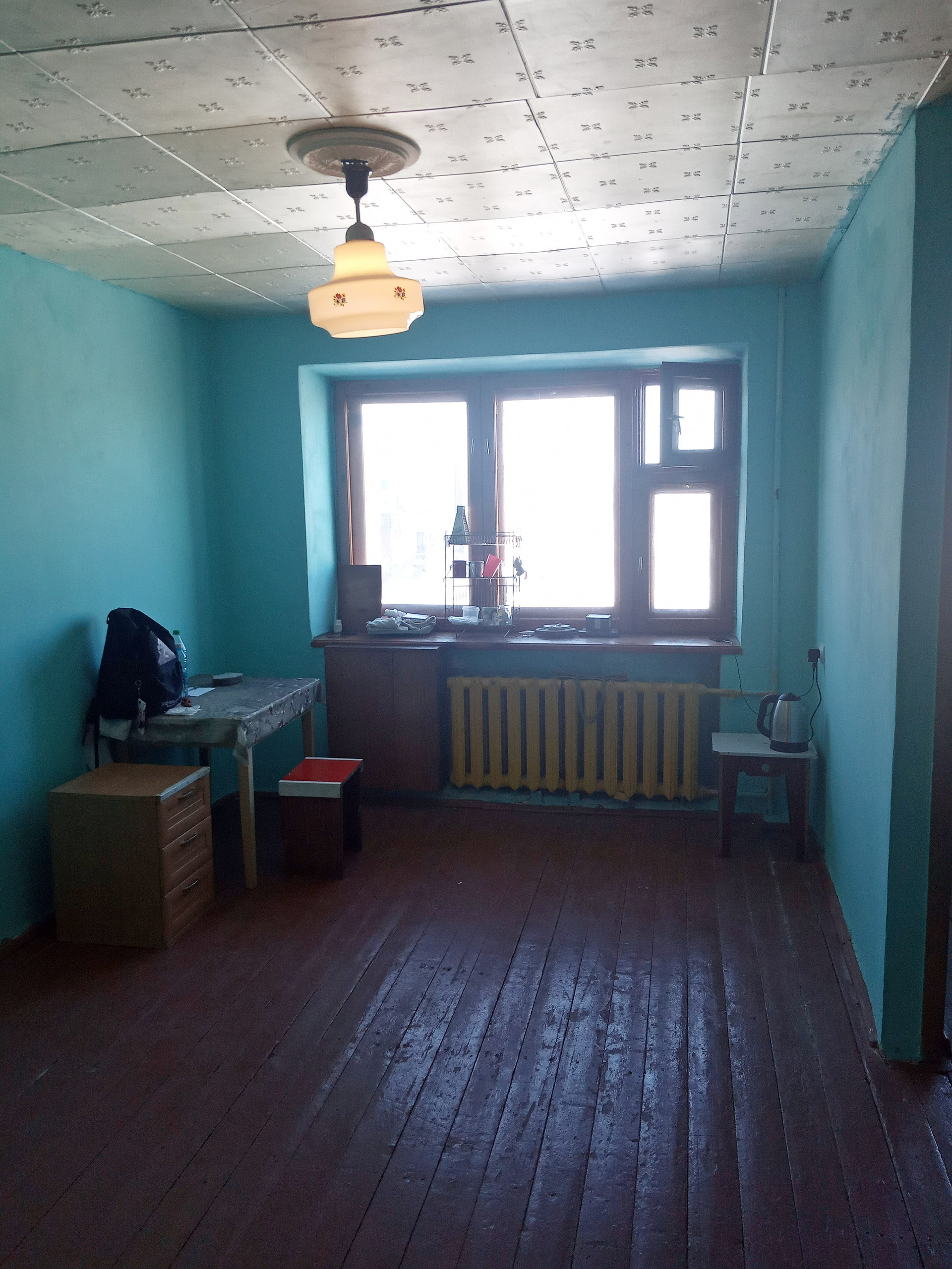 Стены окрашены. Потолки оклеены декоративной потолочной плиткой.