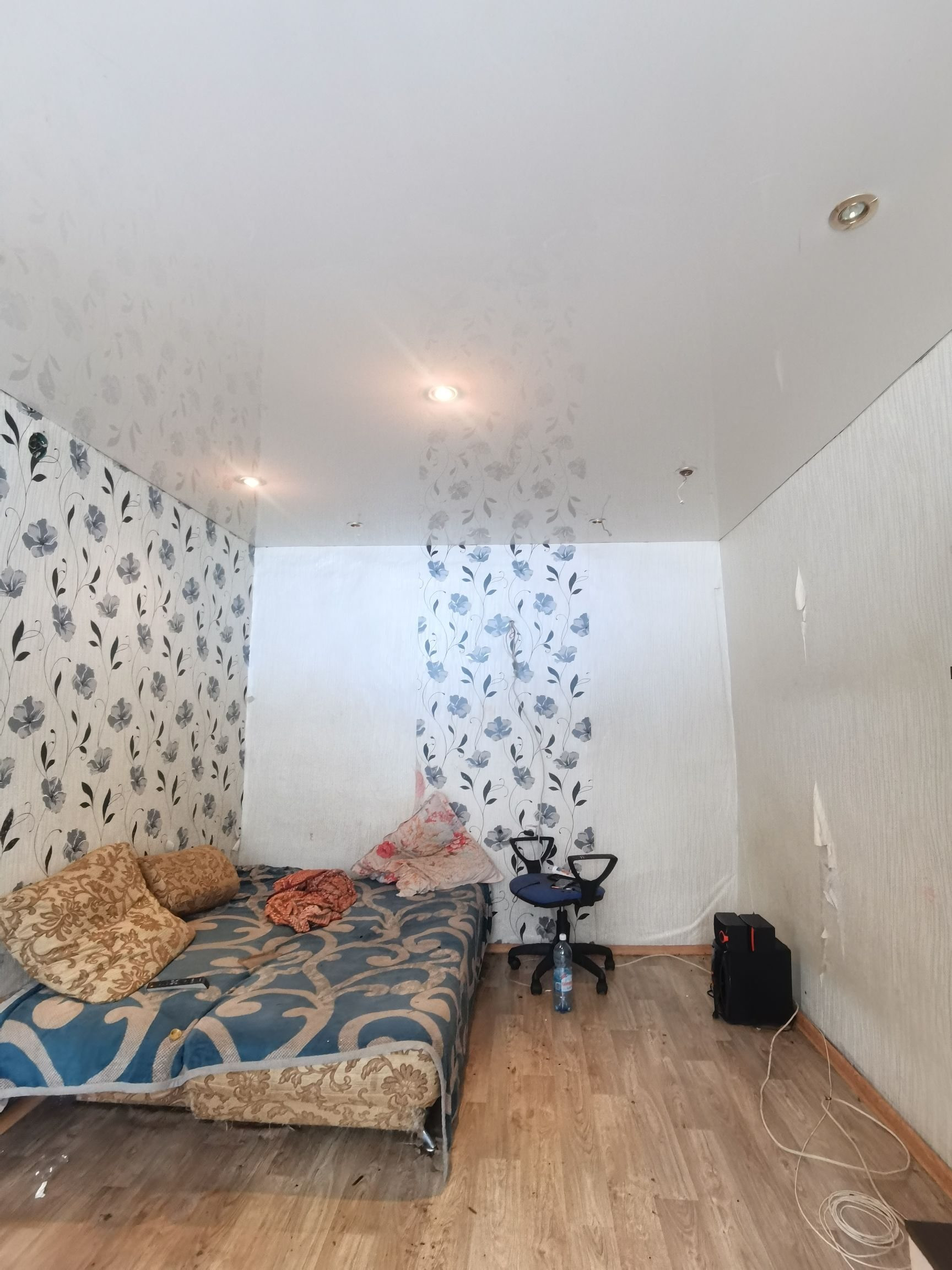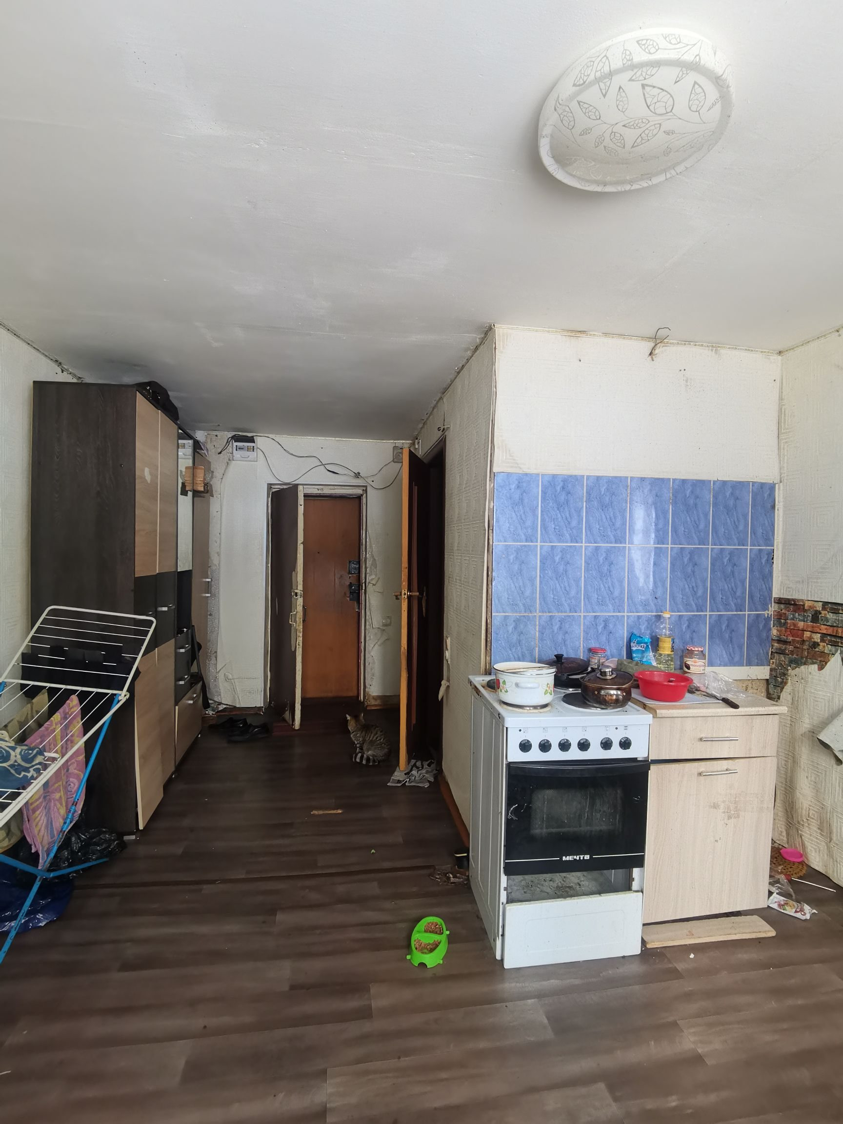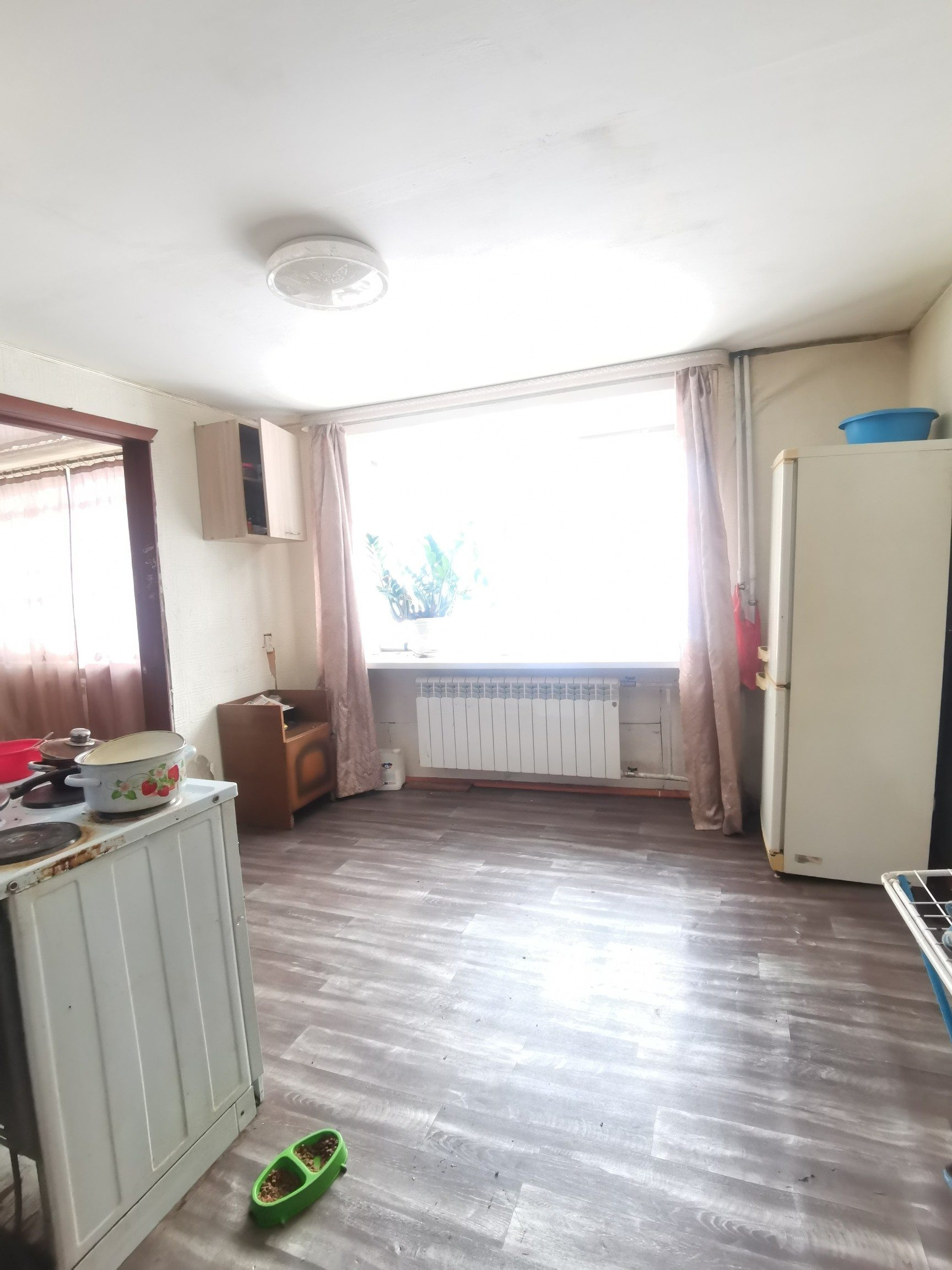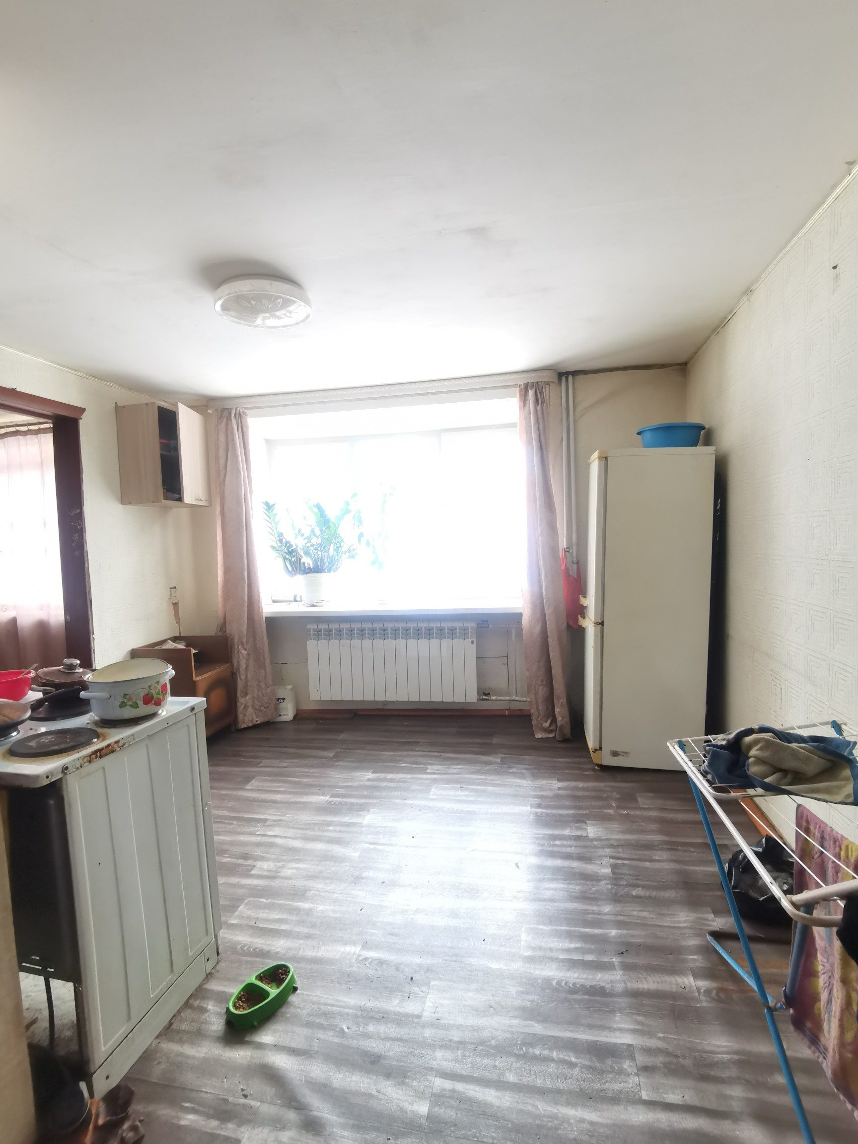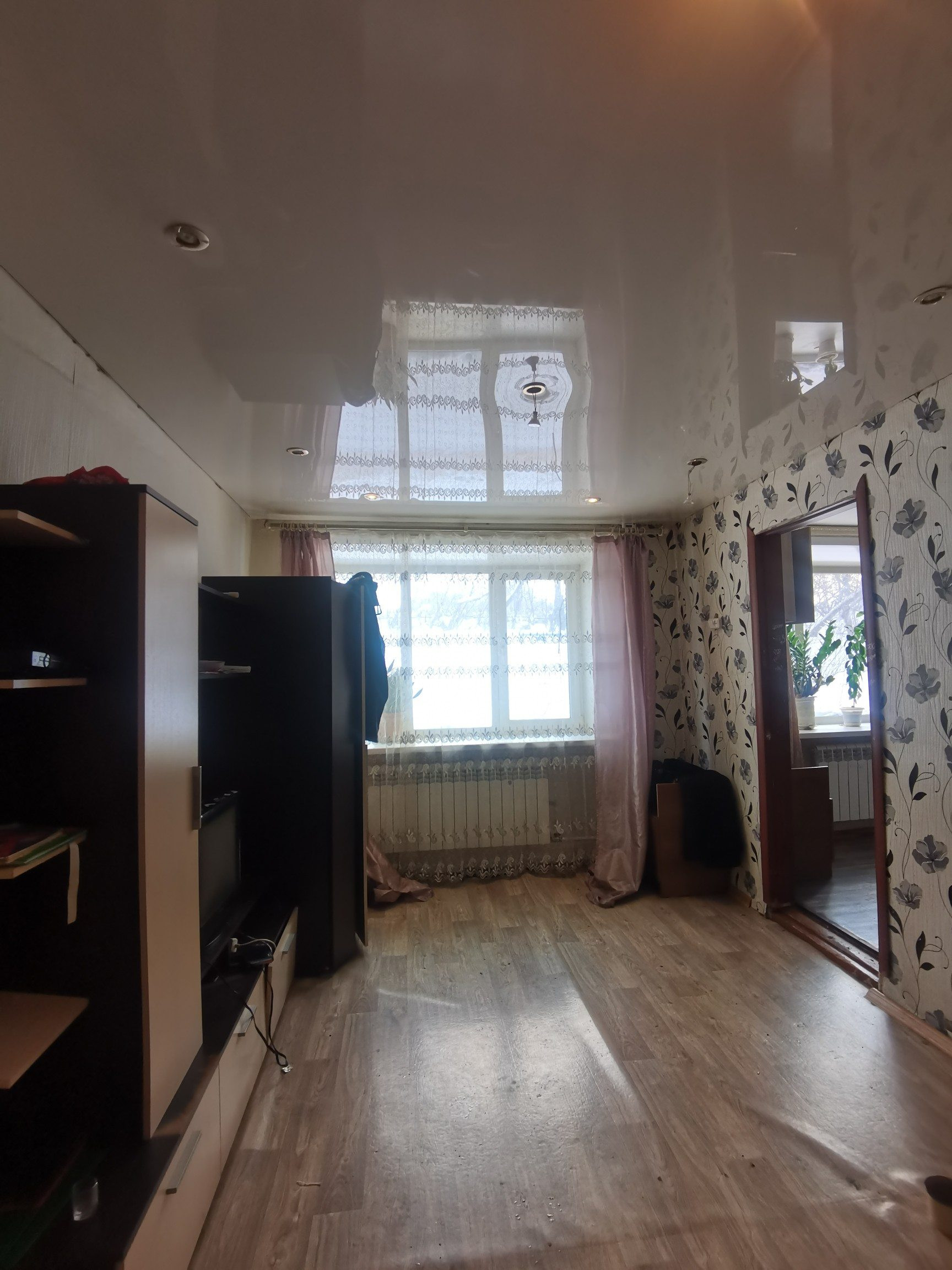 Большая кухня, санузел совмещен. Окна пластиковые. Большая жилая комната. Нужно только навести порядок. Потолки натяжные. Квартира теплая и светлая.
