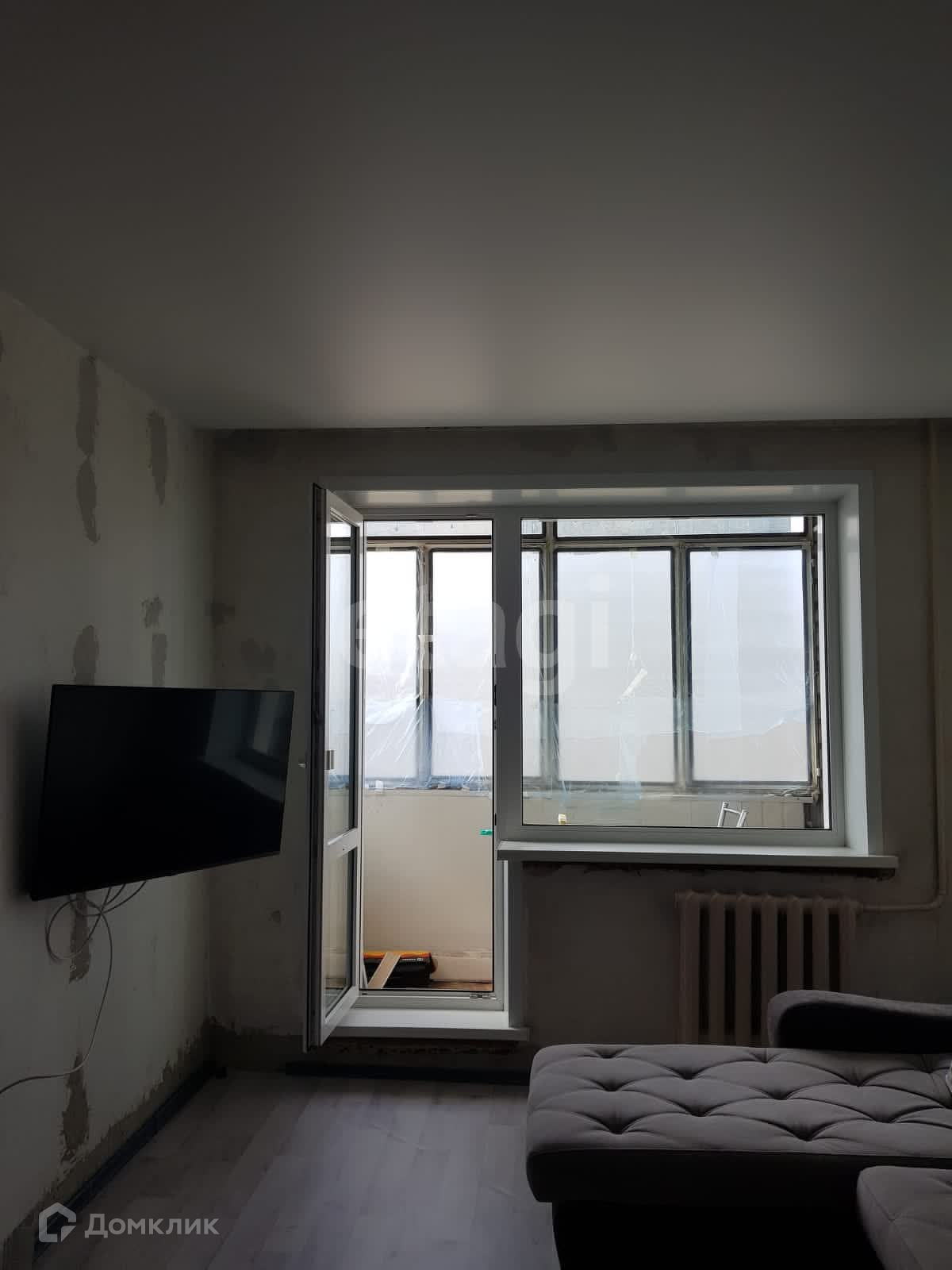 Балкон остеклен металопластиковым профилем, установлены пластиковые окна с выходом на одну сторону дома. Планировка комнат: просторная гостиная (17,4м.кв), кухня (5,5 м.кв), санузел совмещённый- все комнаты изолированные.