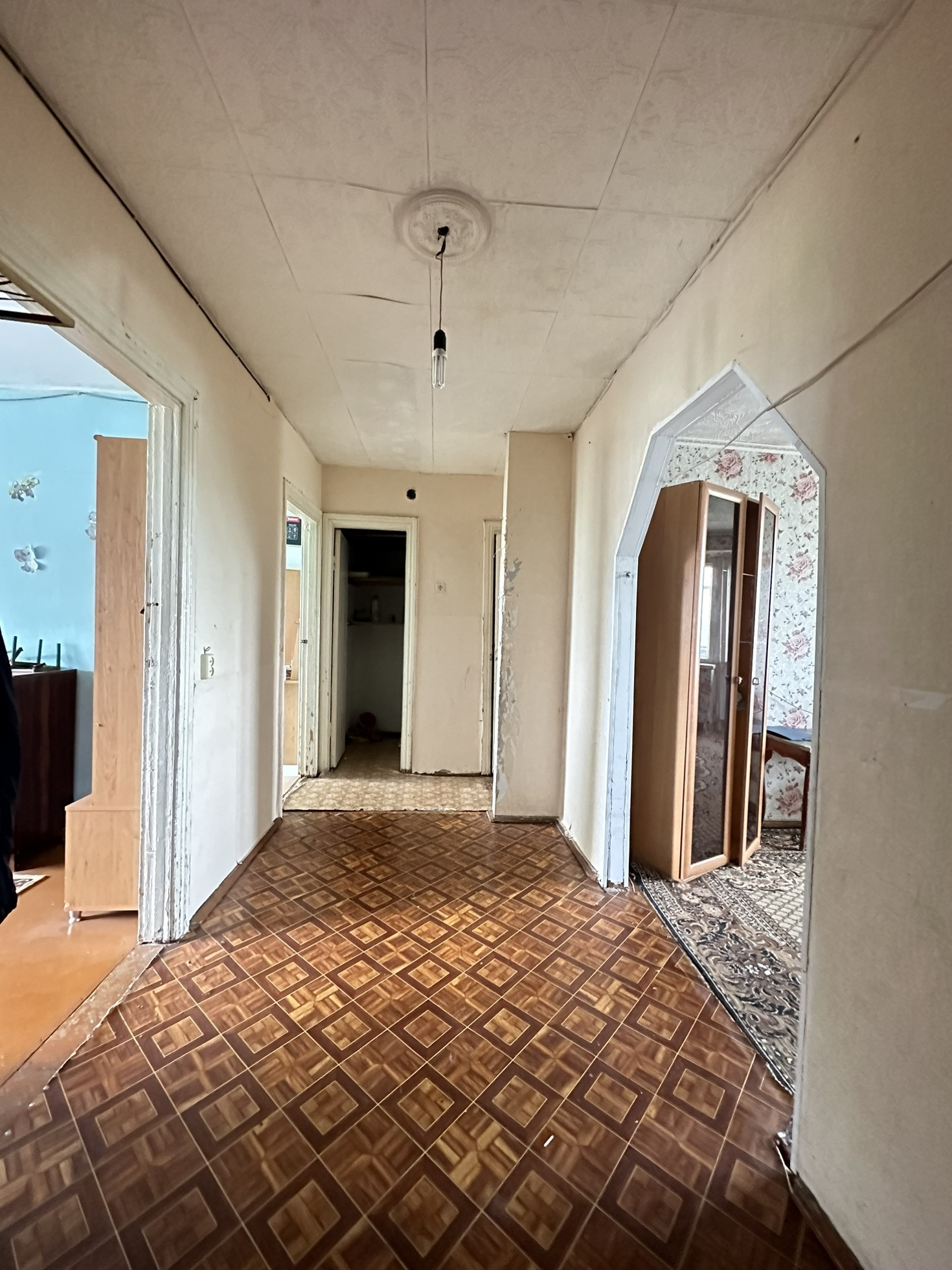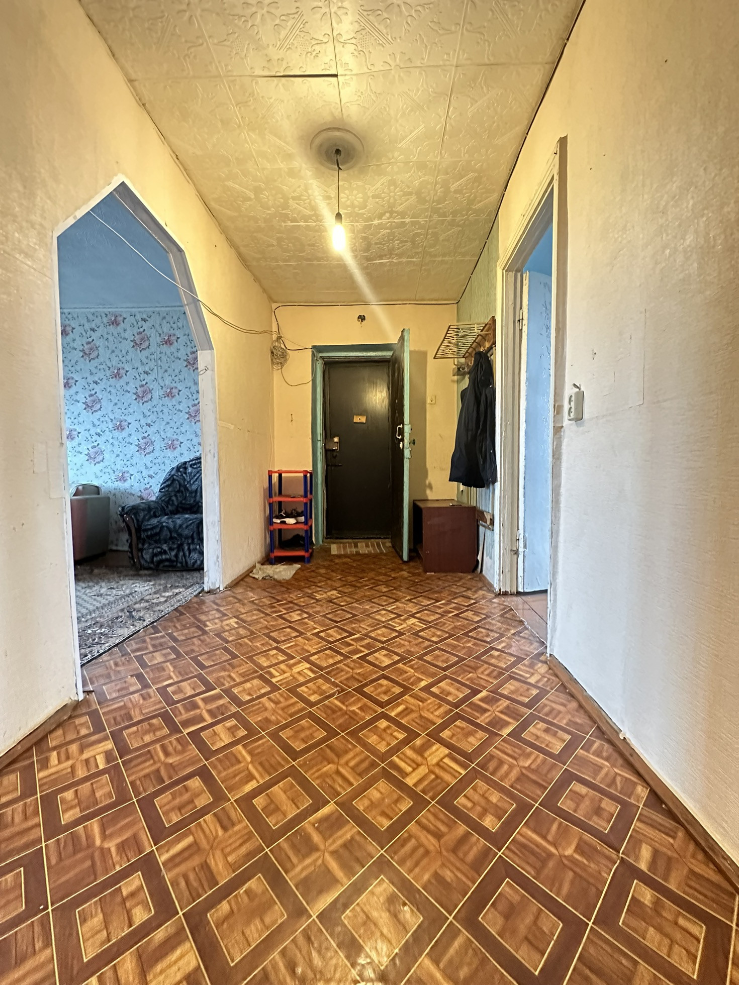 Продается 3 комнатная квартира  в кирпичном доме . Квартира теплая, светлая. Требующая ремонта . полы деревянные- покрыты линолеумом, в спальне заливной. окна деревянные. потолки побелка, стены обои. сантехника под замену. Дверь входная металлическая, двойная.  Освобождена, ждёт новых хозяев. Документы готовы к продаже.