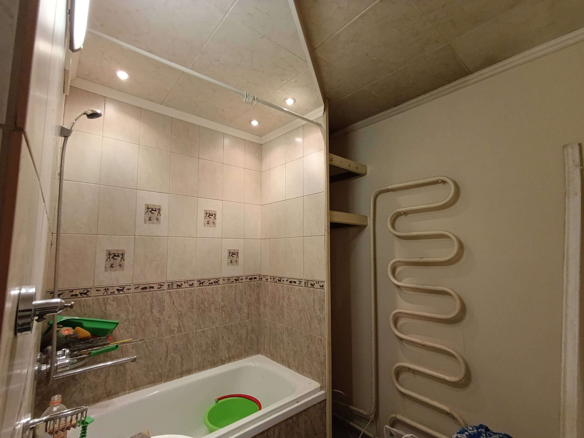 Санузел раздельный, ванна под современным кафелем. Хорошая сантехника.