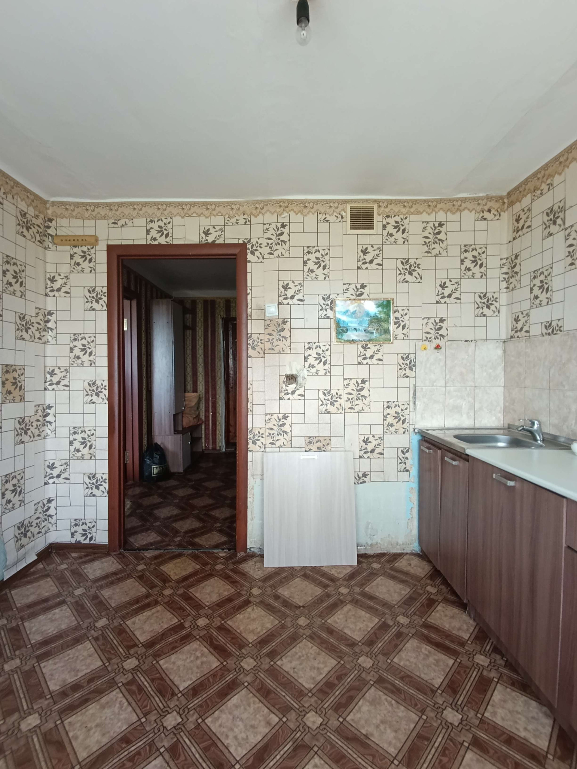 Остается: в кухне кухонный гарнитур, прихожая и диван в гостиной.