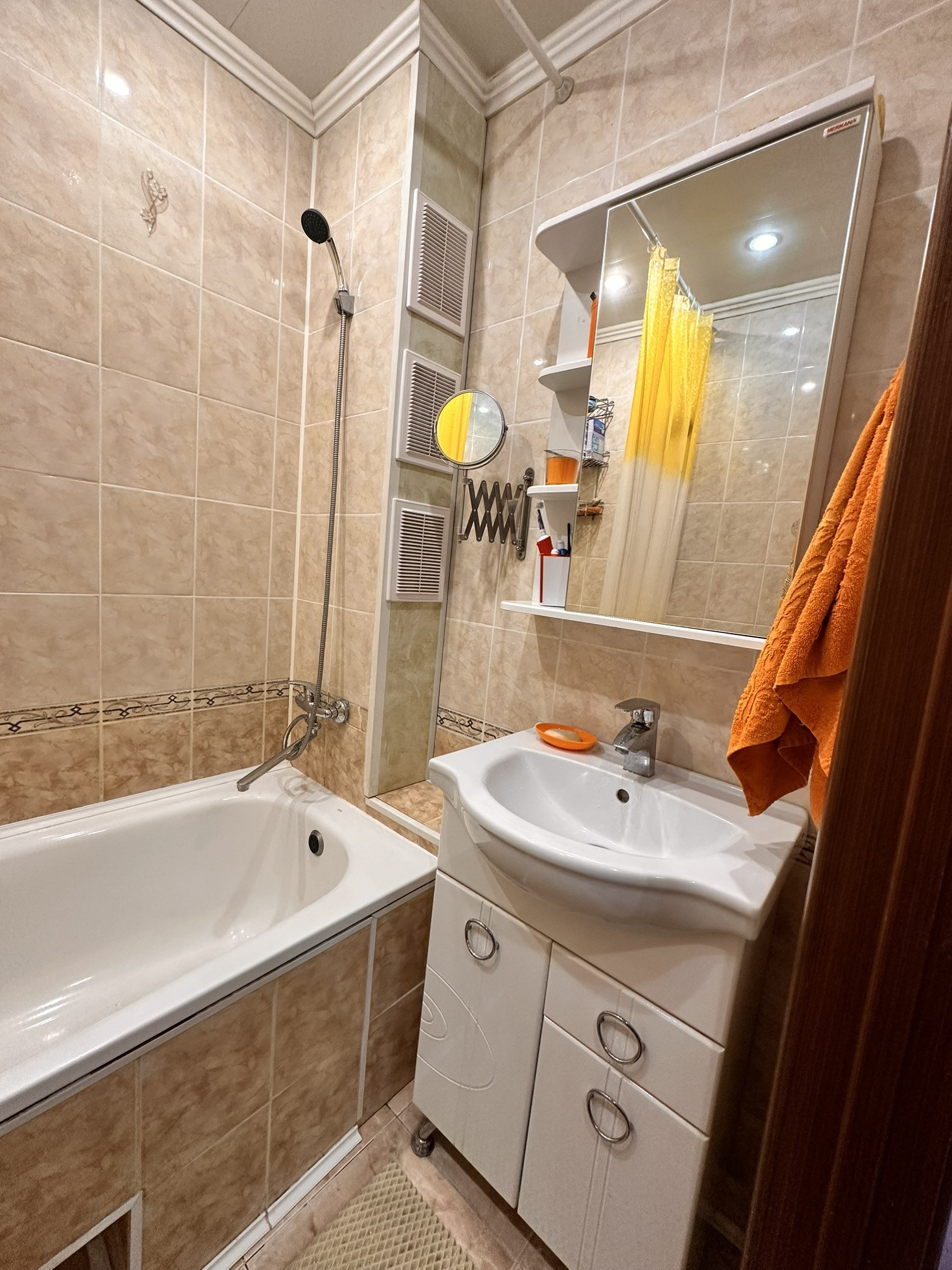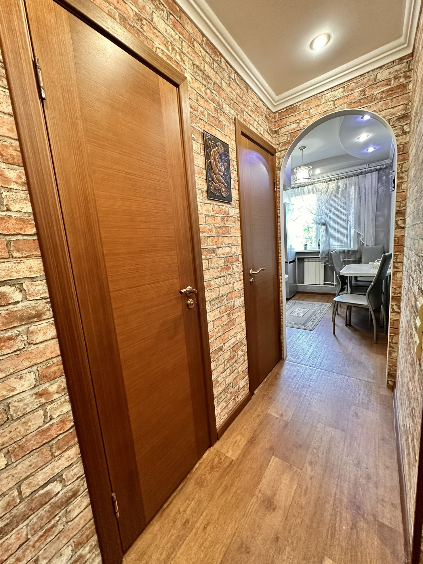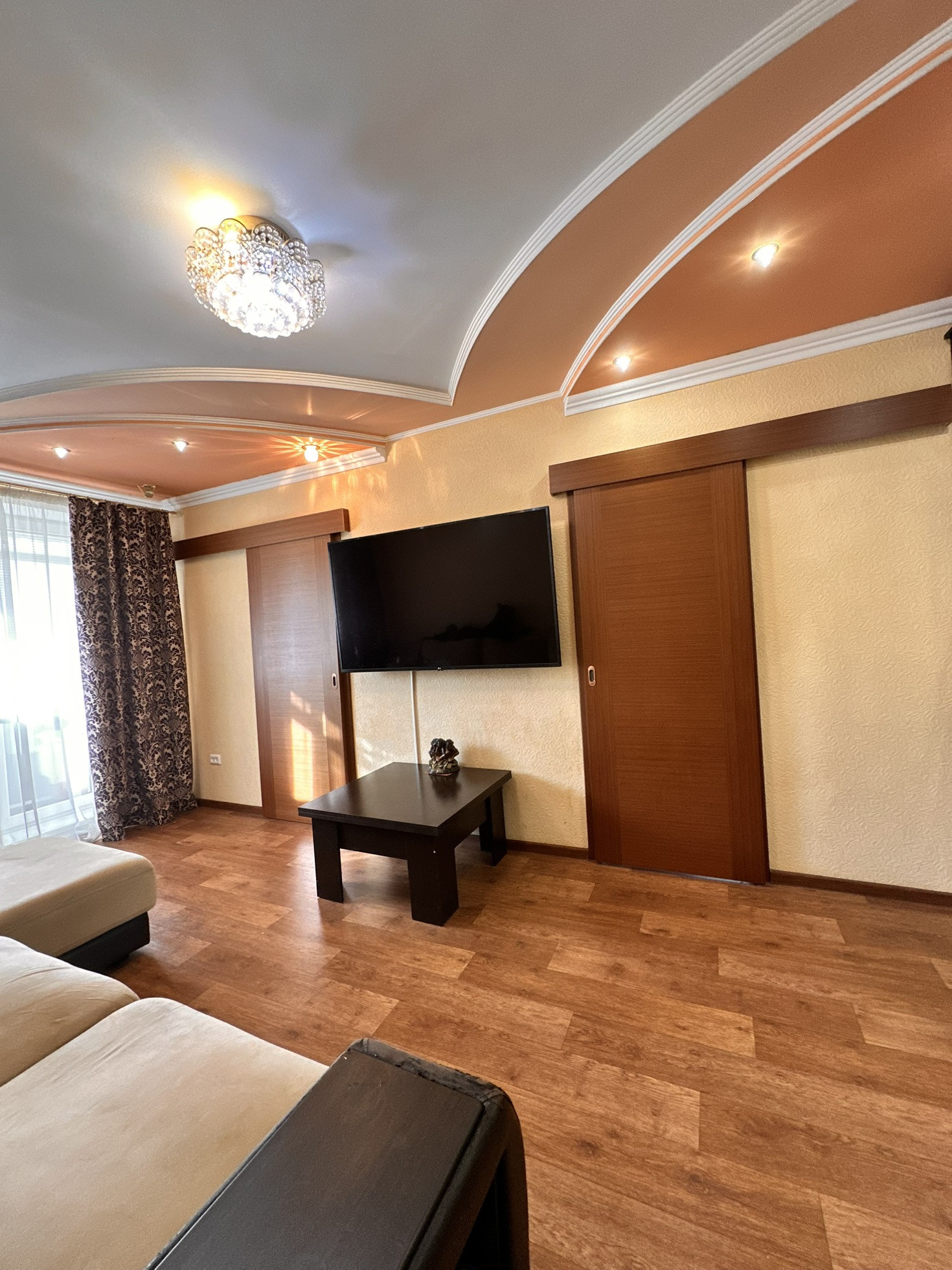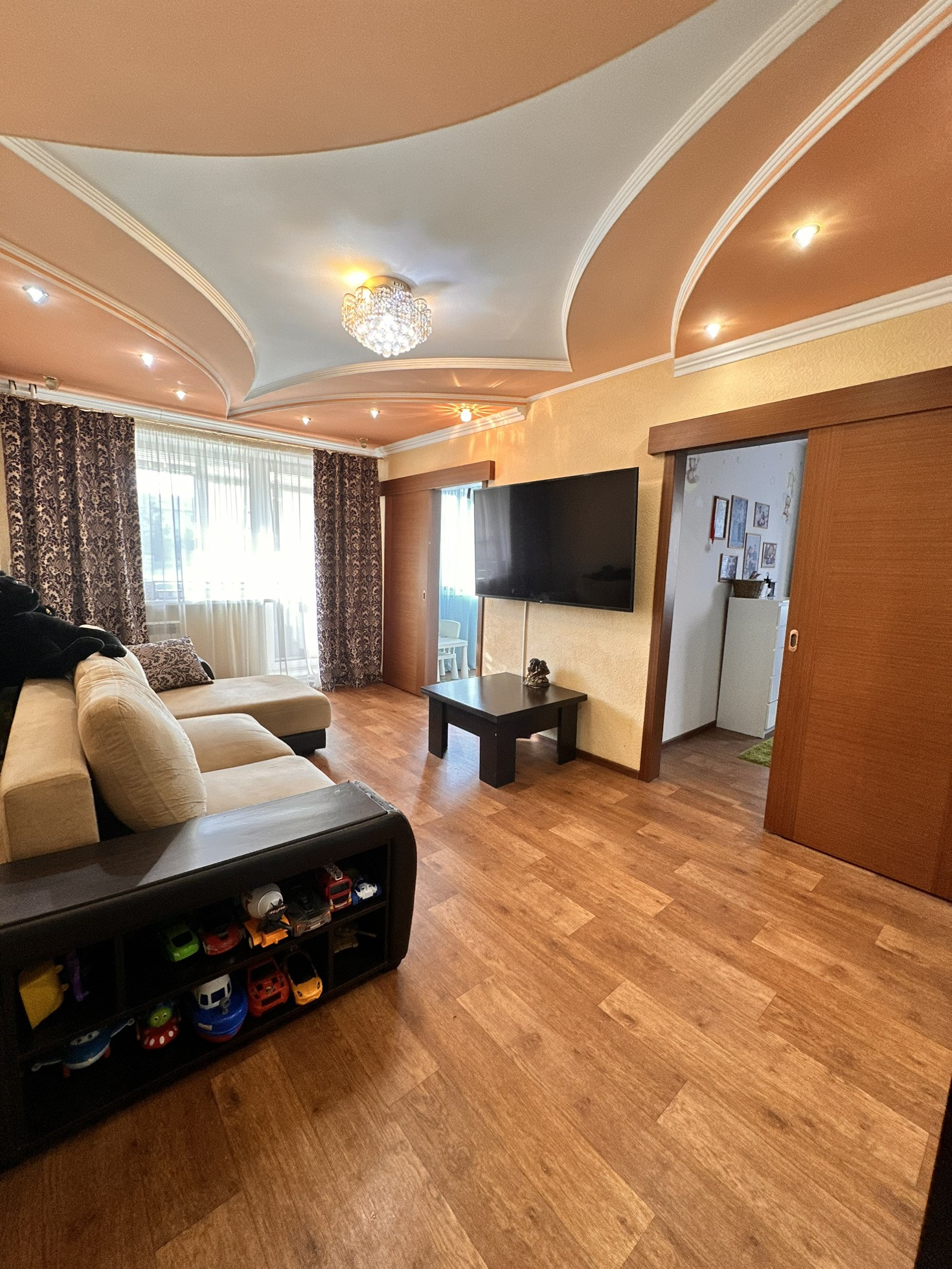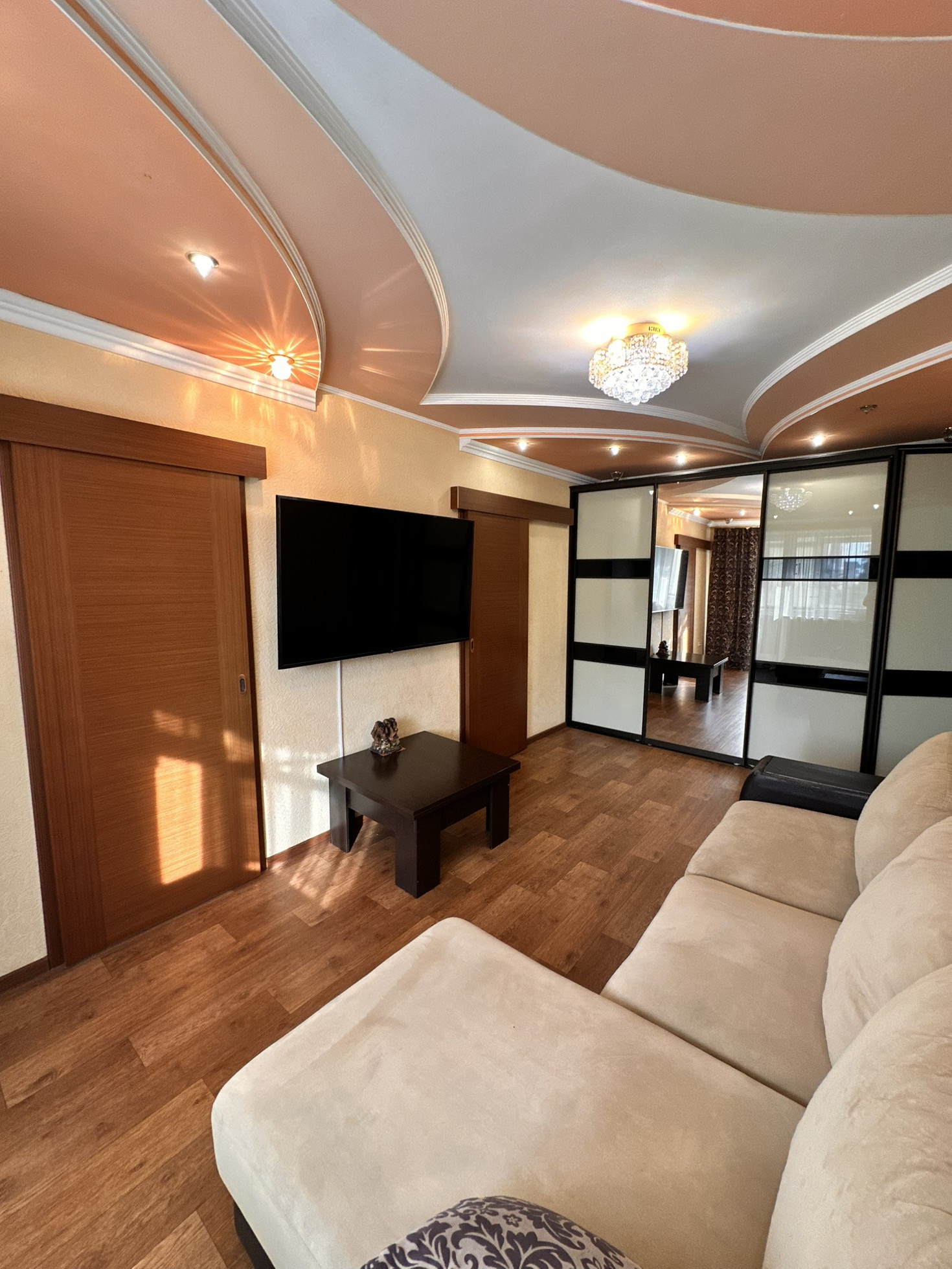 Встроенная кухня, в гостиной встроенный вместительный шкаф и межкомнатные двери-купе, которые существенно экономят пространство, новые радиаторы отопления во всех комнатах, с возможностью перекрывания, так как зимой очень тепло и оставляем для отопления только стояки.