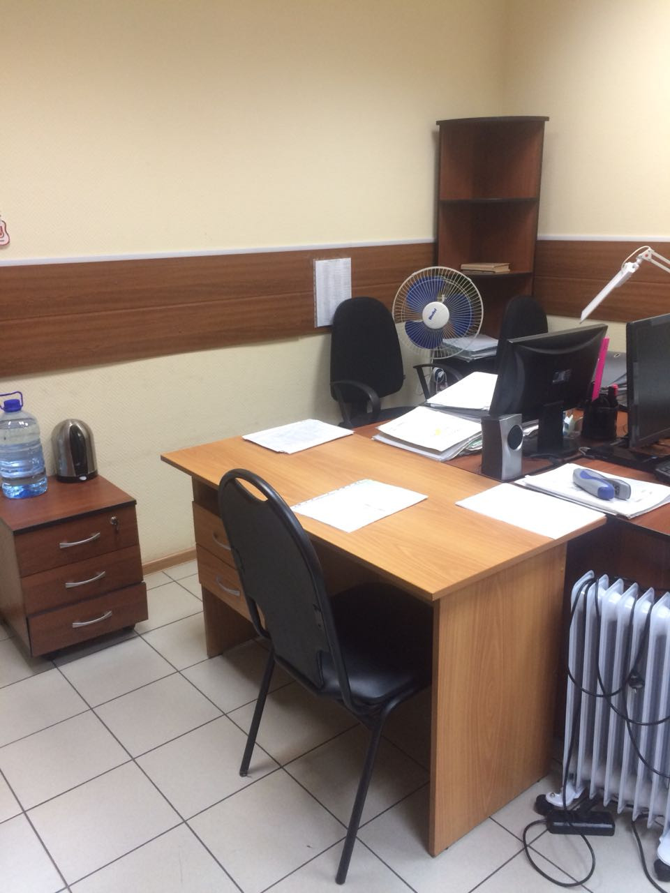 Ранее использовалось как офис шахтового предприятия.  При продаже вся мебель остается. 3 кабинета, 6 рабочих мест. На окнах рольставни