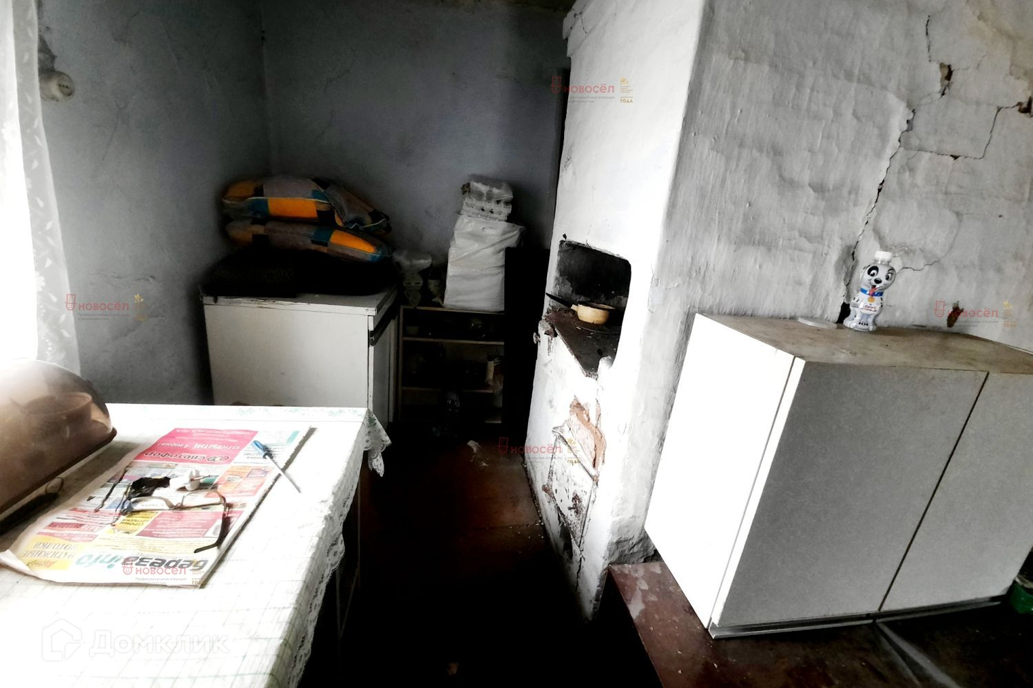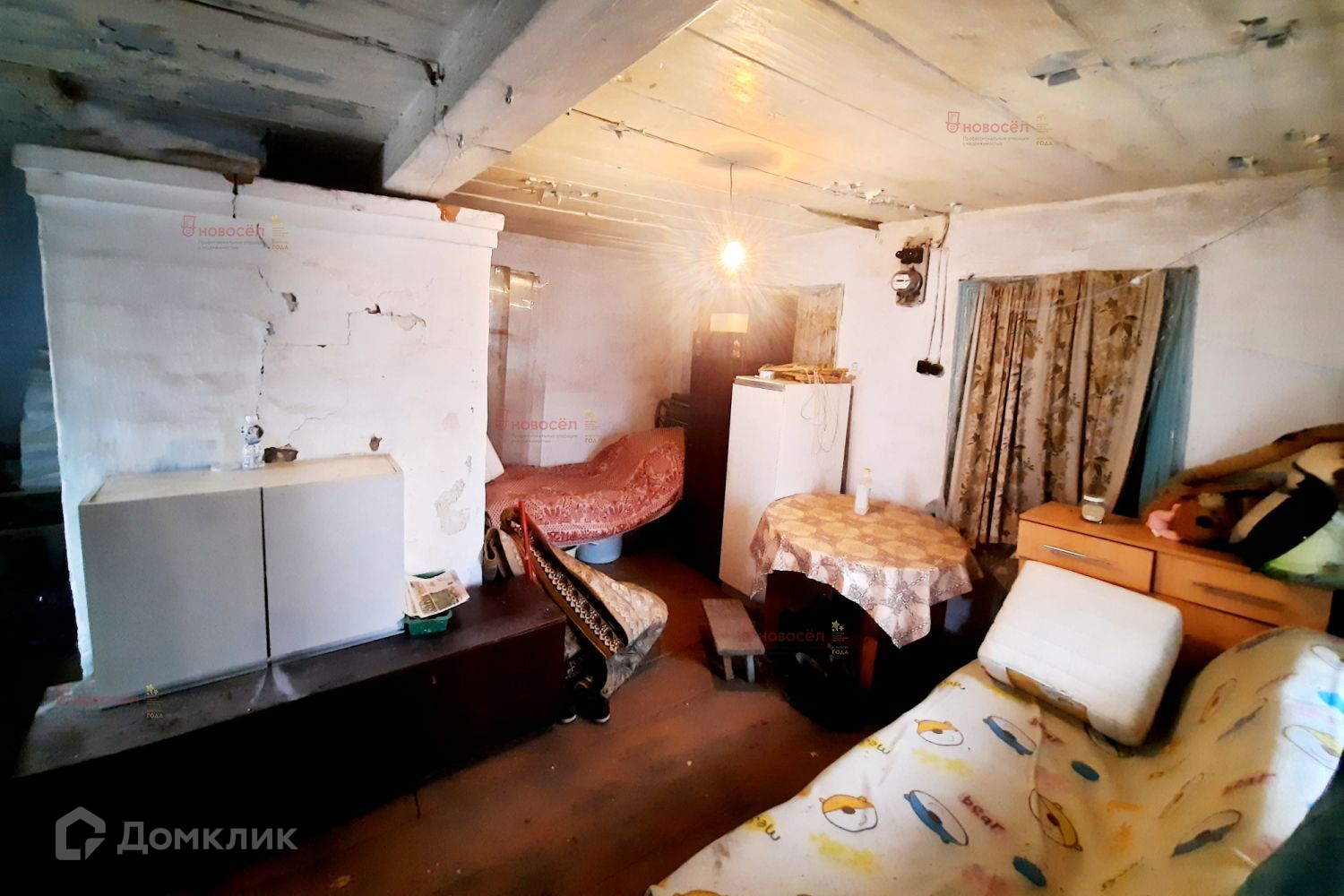 Дом жилой из бревна 1939 года постройки, есть возможность прописаться. Отопление - печное, газ проходит по улице, есть возможность подключить, водоснабжение – центральное, заведено в дом.