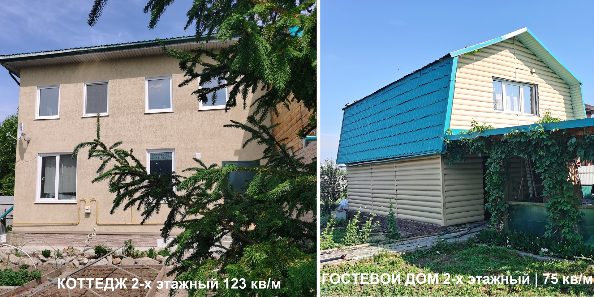 ПРОДАЮ два дома на одном участке 8 соток: 2-х этажный коттедж (123 кв.м) + гостевой 2-х этажный дом (75 кв.м.) - возможно проживание двух семей.