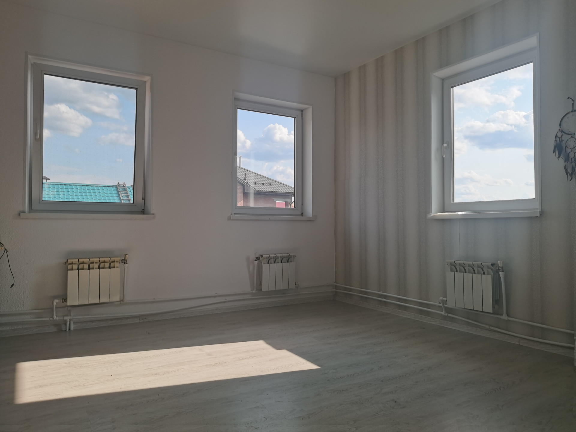 на 2-ом этаже: три просторные спальни, отдельная уборная комната с ванной, коридор с красивой лестницей.