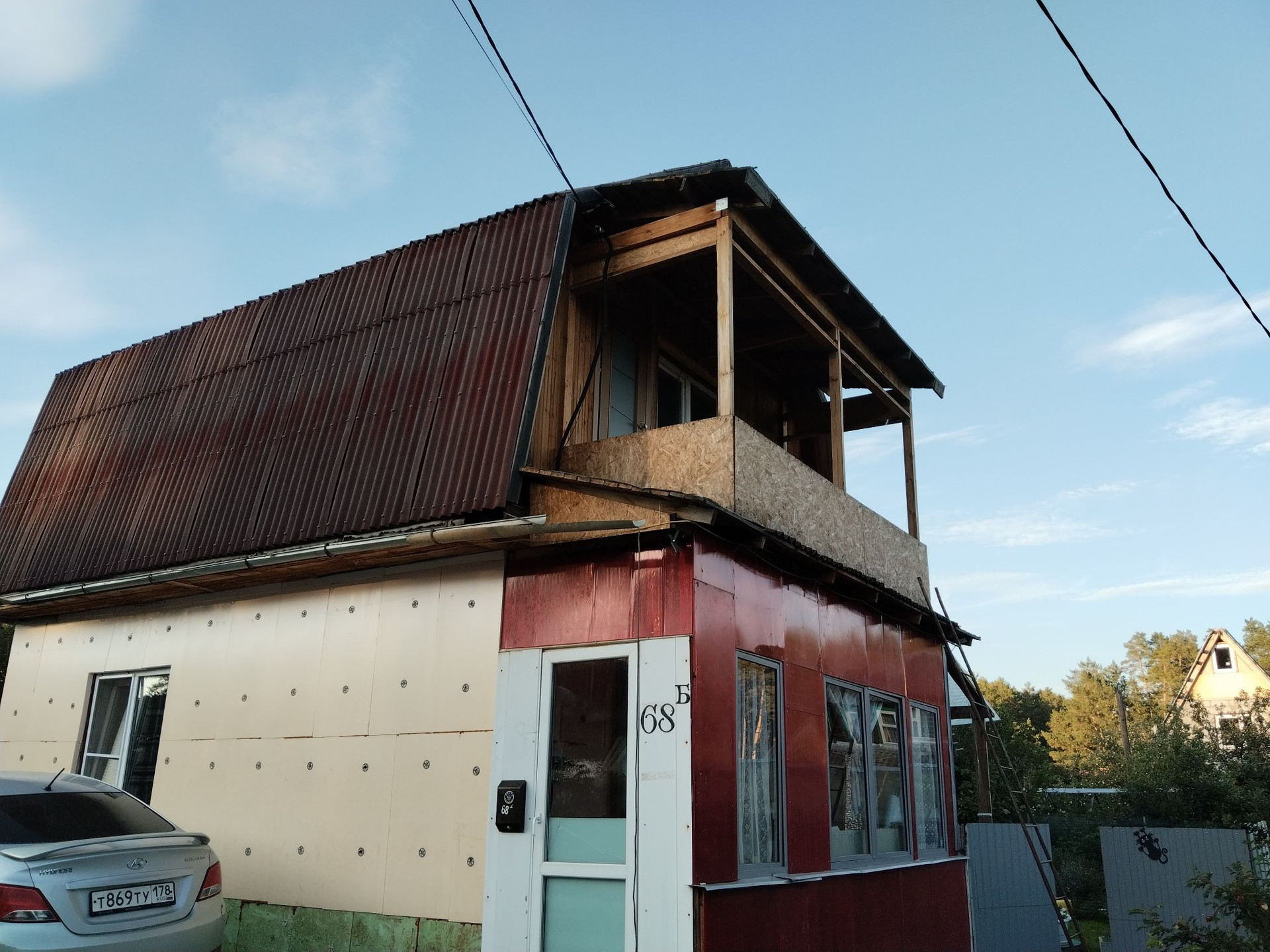 Фундамент ленточный. Первый этаж из пеноблоков, второй каркасный. Второй этаж с балконом.