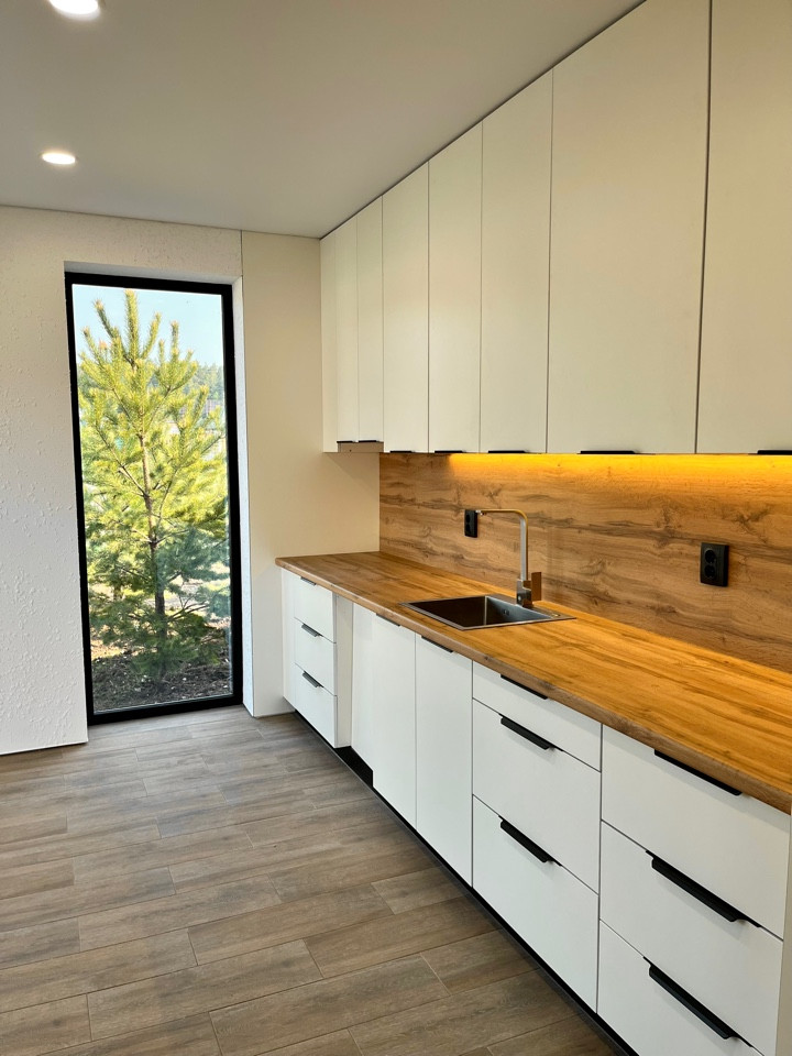 Новый дом в стиле барнхаус, зарегистрирован в росреестре.Земли ИЖС, инраструктура рядом, никаких сборов.Выполнен по дизайнпроету, высокие скрытые двери, элементы дерева, декоративная штукатурка.Зона кухни и прихожая мебелированы на заказ. Ипотека, обмен на ваше жилье. Готовность дома декабрь 2023 г.