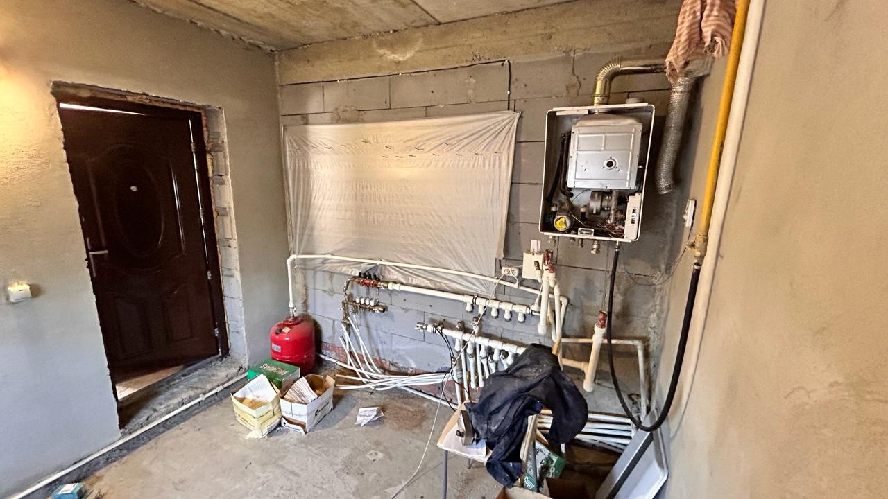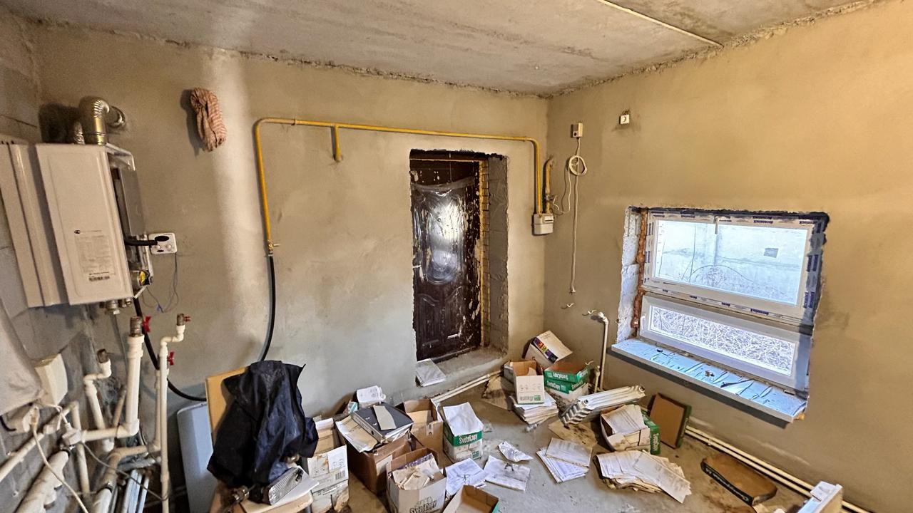 Отопление и горячая вода от газового котла. Сейф двери, окна пластиковые. Водоснабжение центральное, городской водопровод, канализация автономная 10 куб.м.