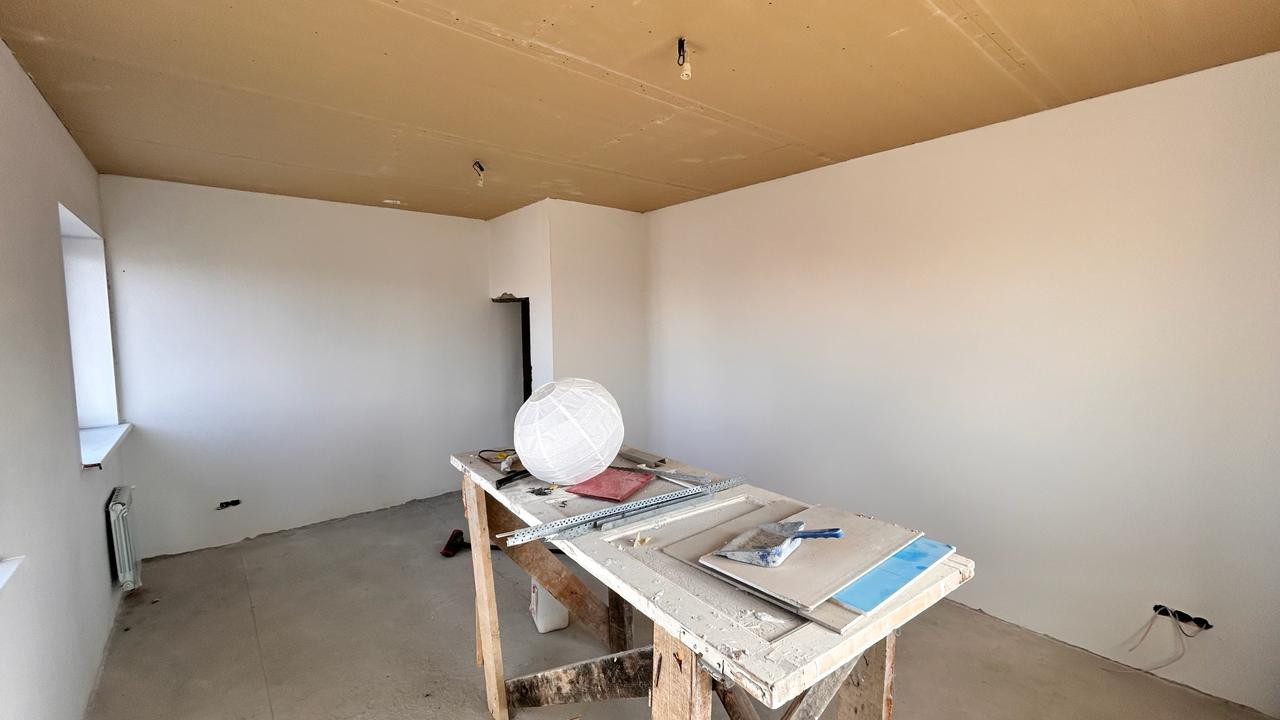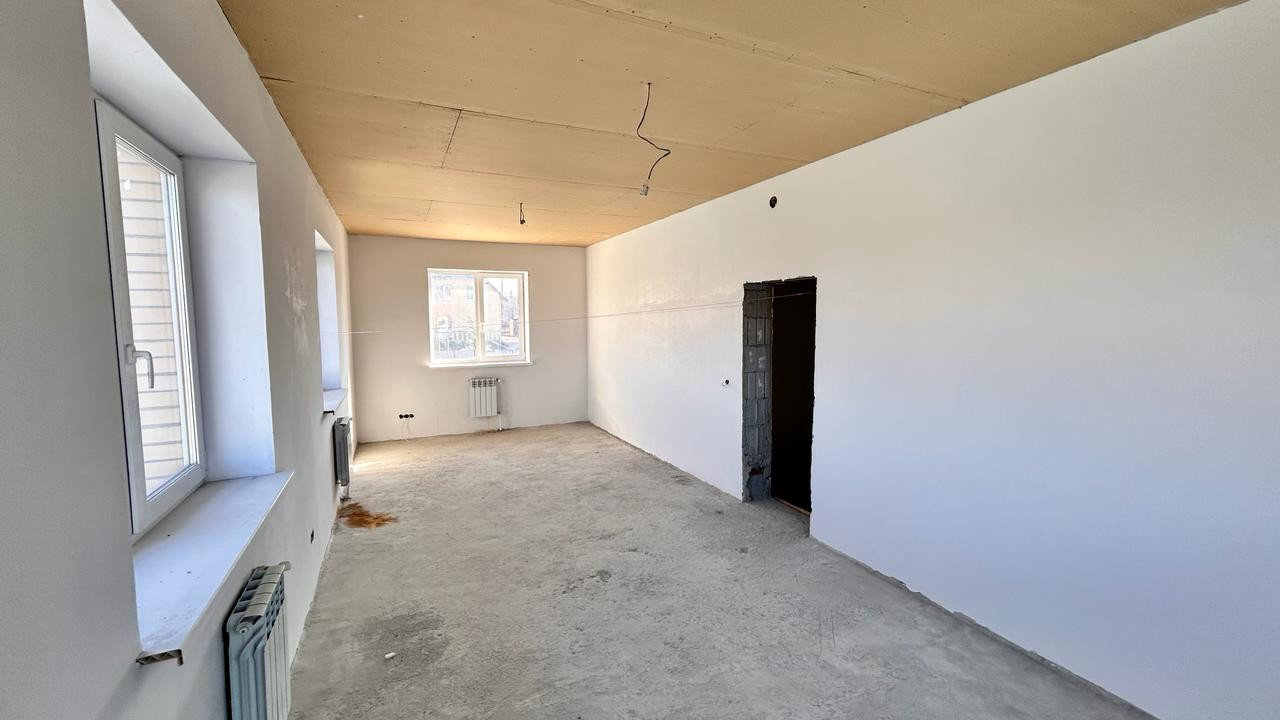 Фундамент ленточный монолитный. Электричества положено 40 кВат на дом. Материал стен твинблоки с утеплением, внешняя отделка желтым кирпичом, перекрытия железобетонные. На первом этаже подогрев пола. Помещения выполнены в чистовой штукатурке.